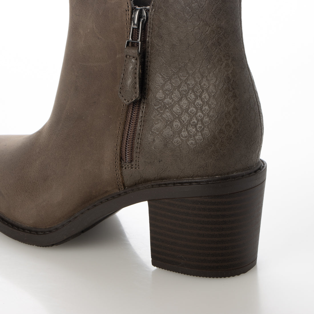 Combining a mid-block heel and a soft pointed toe, the Secene series short boots achieve a silhouette that can be dressed down or up in various scenes.