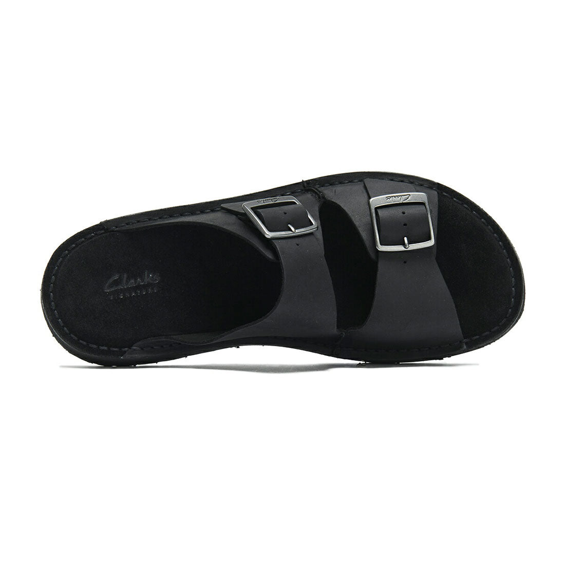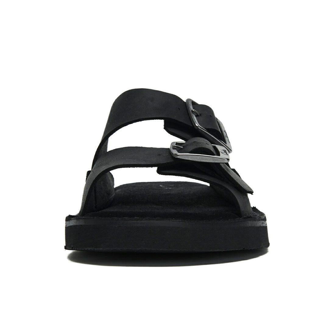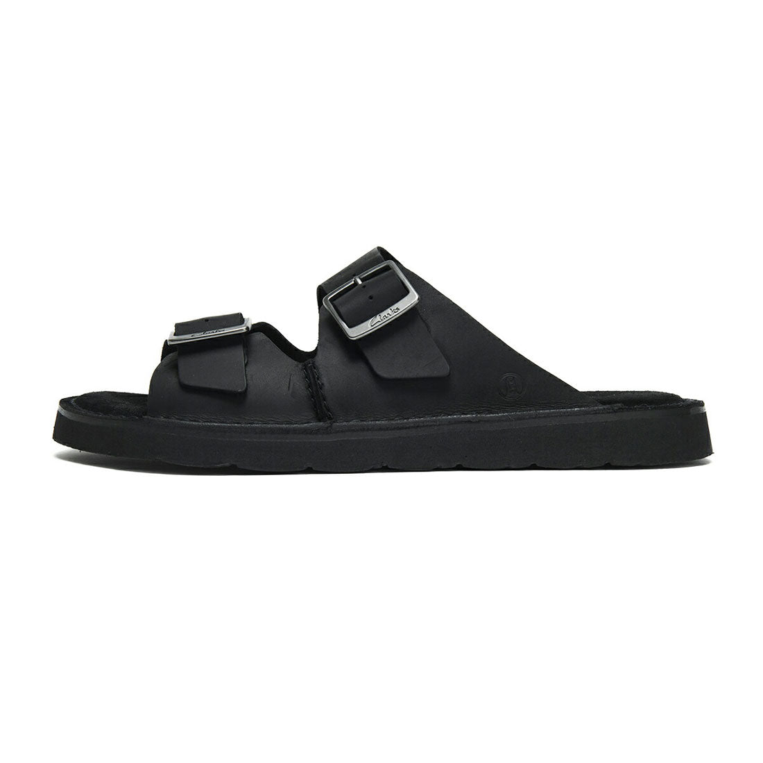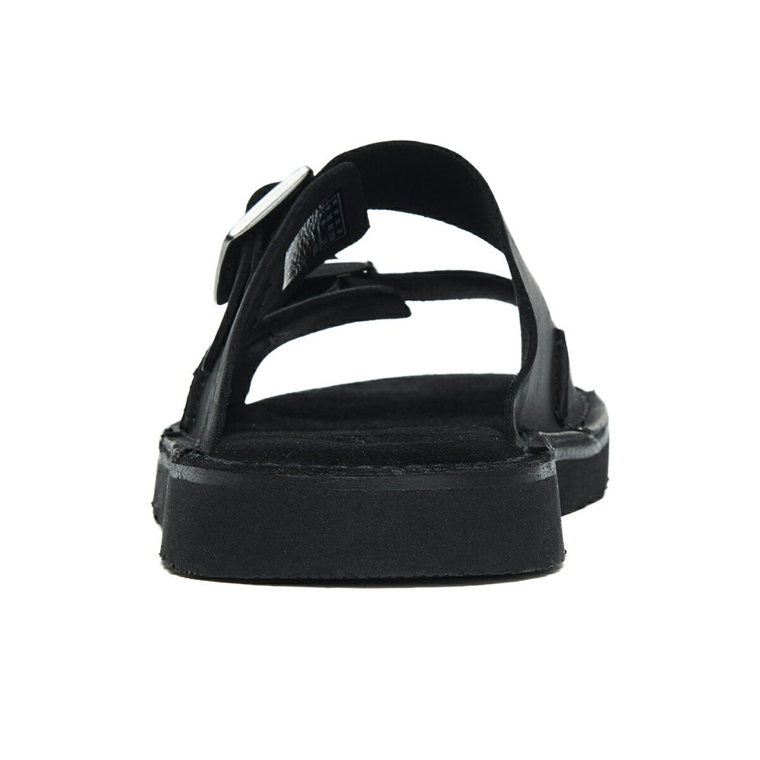 Thick leather strap wraps around the foot, and the highly cushioned footbed provides a comfortable fit.