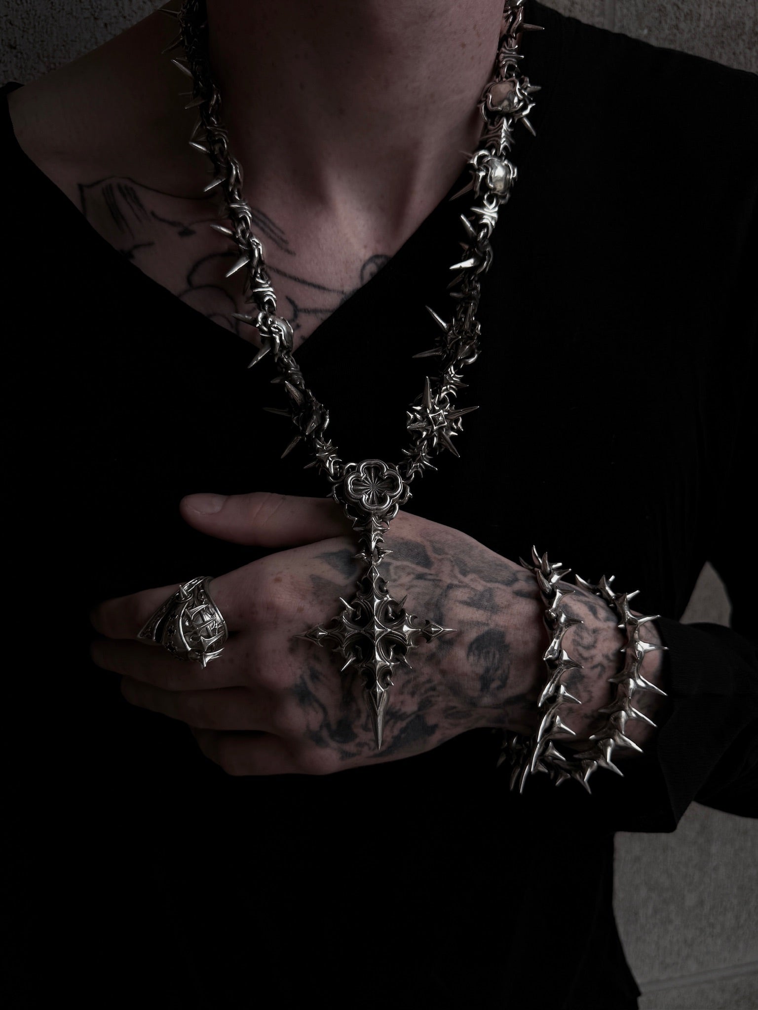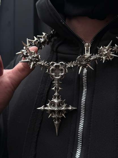 cant decide if ur feelin deadly or holy? dw we got u with our 2 pendant chain with swappable skull and cross pendants. secured within our unique magnetic clasp. available in full stainless steel. the choice is urs.