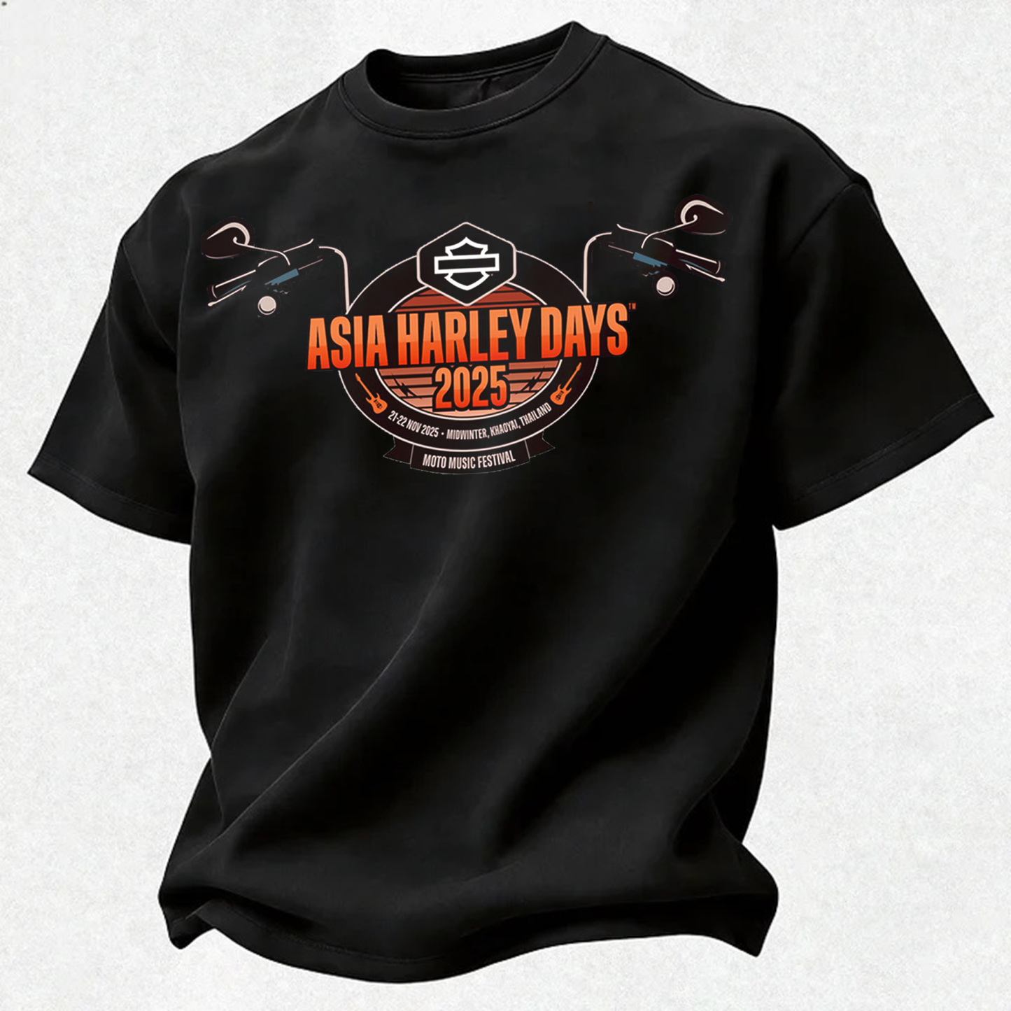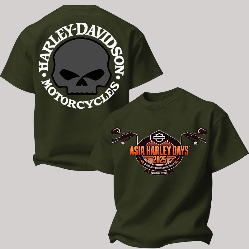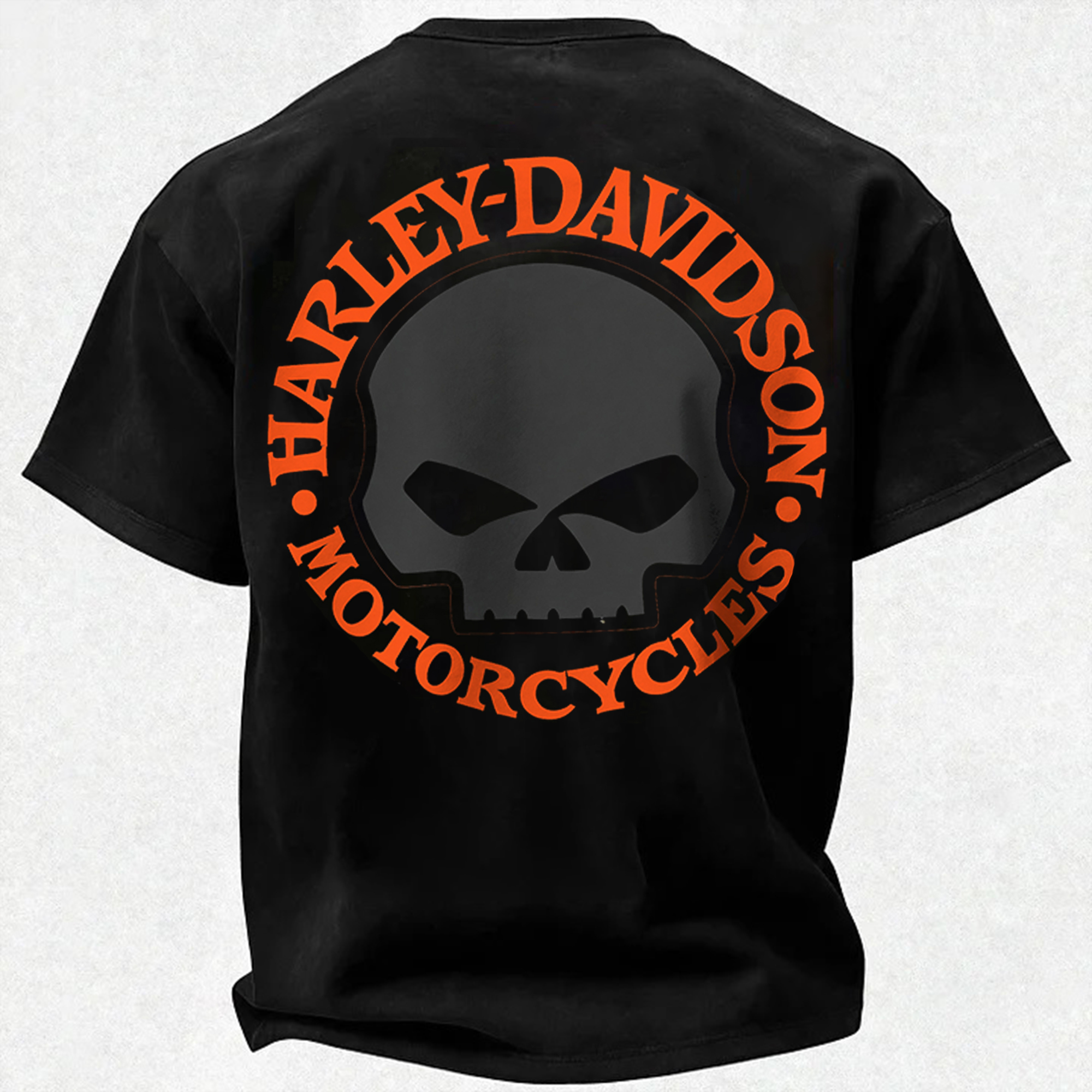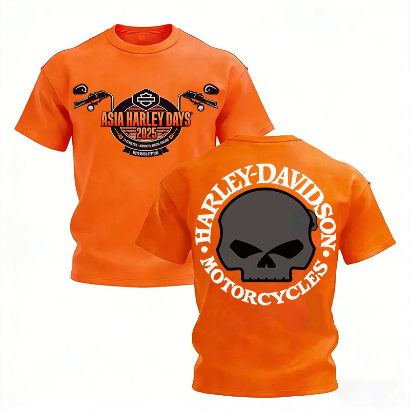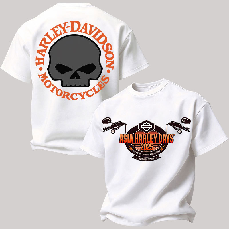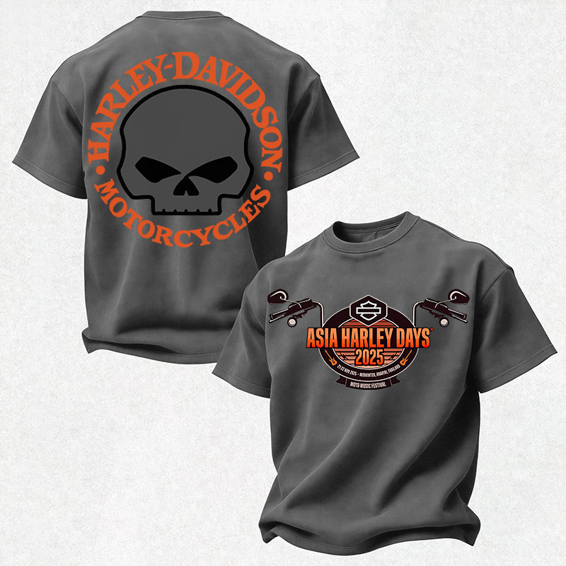 ASIA HAthtRLEY DAYS 2025 HAthtRLEY-DAthtVIDSON MOTORCYCLES Retro Skull Print Men's T-Shirt |