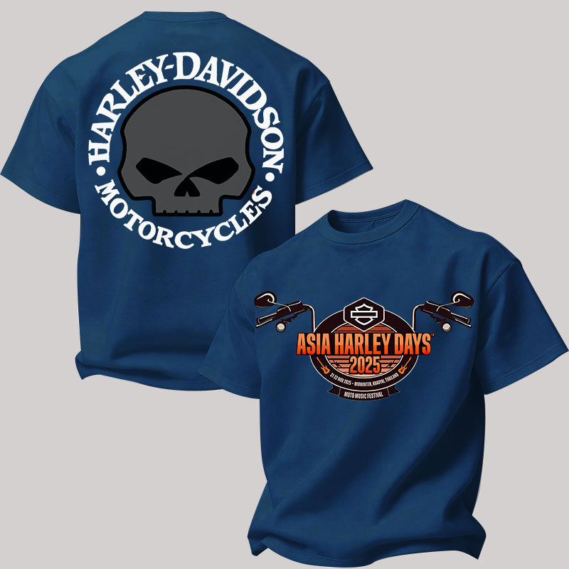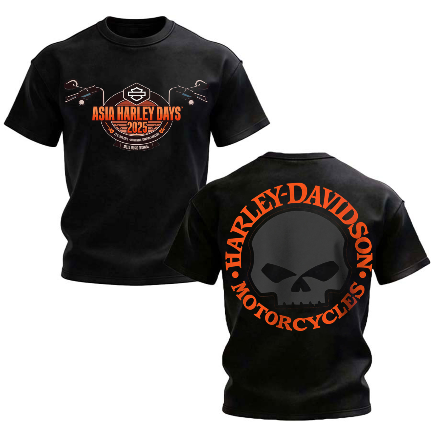ASIA HAthtRLEY DAYS 2025 HAthtRLEY-DAthtVIDSON MOTORCYCLES Retro Skull Print Men's T-Shirt