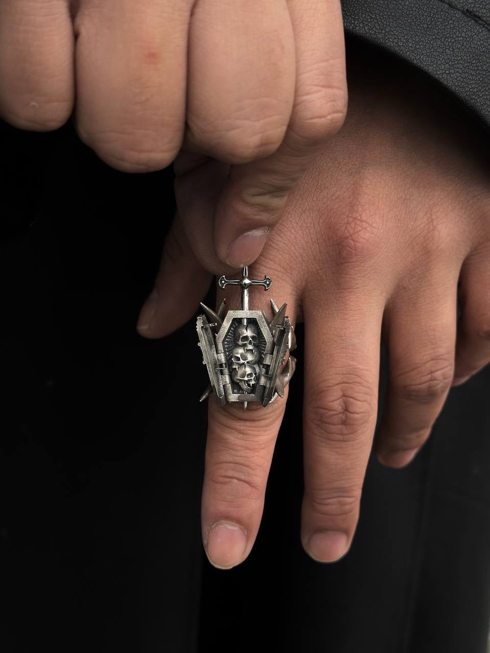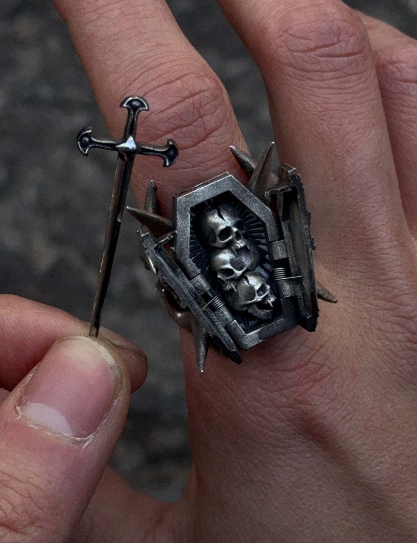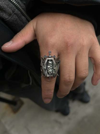 Practice your pull-out skills. The ring comes in two versions Stainless steel and Sterling silver (different % of silver might be used in the alloy for different parts of the item). The sword is slightly sharp.