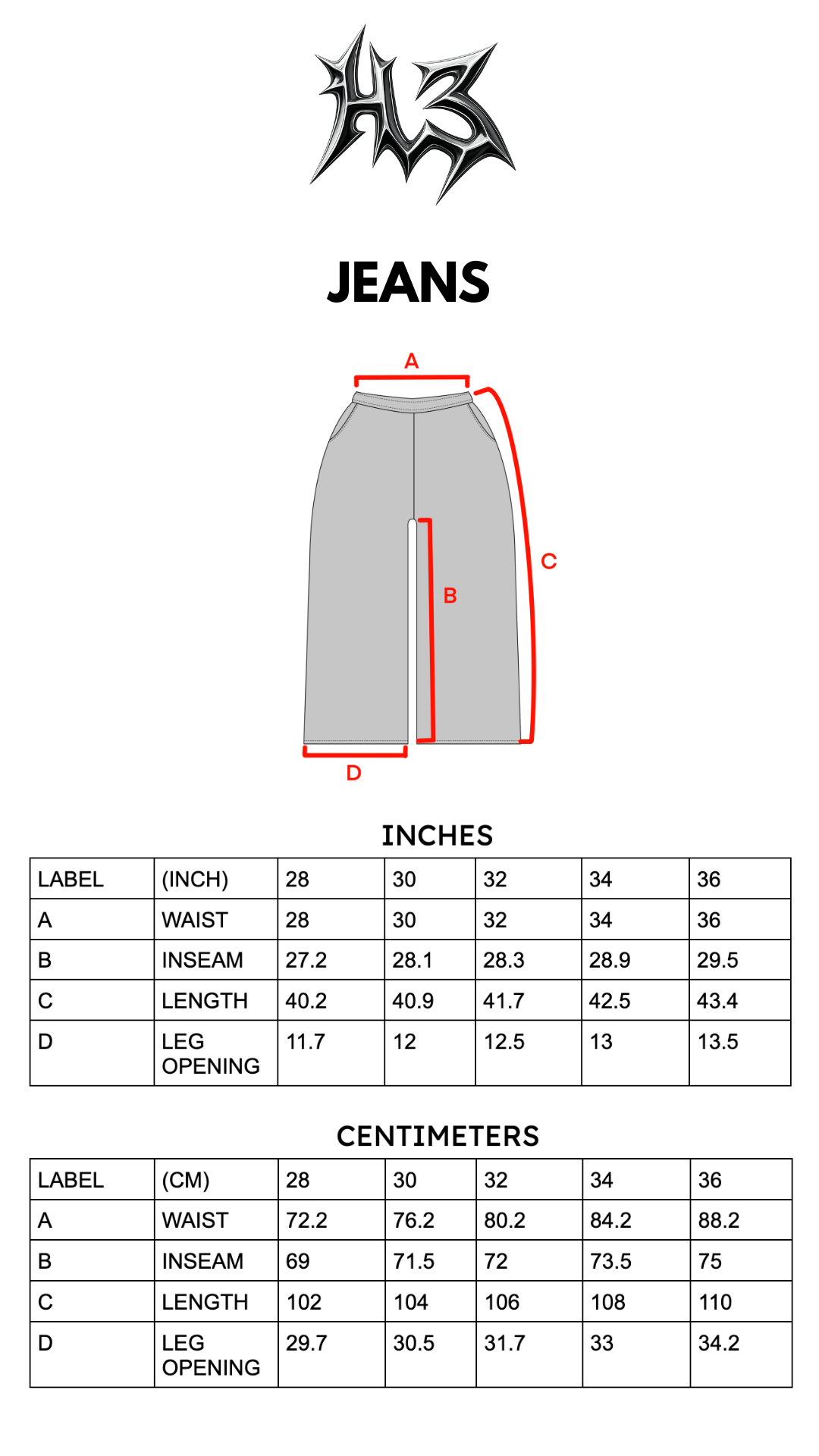 - Wide-legged, baggy fit