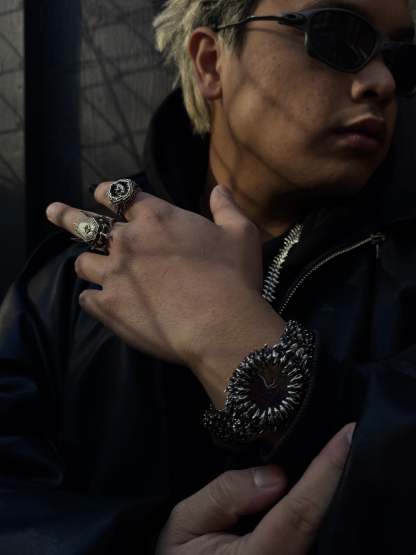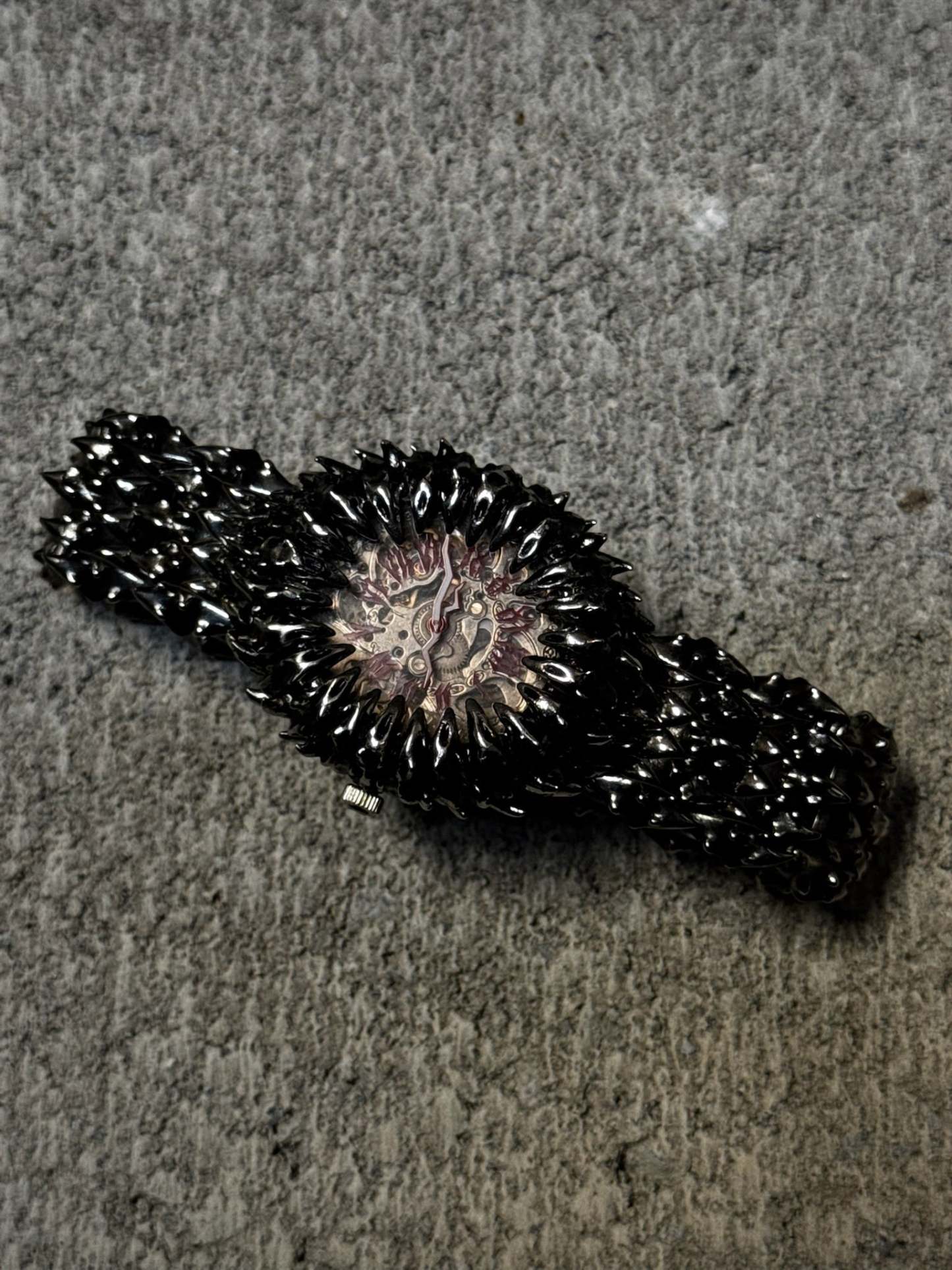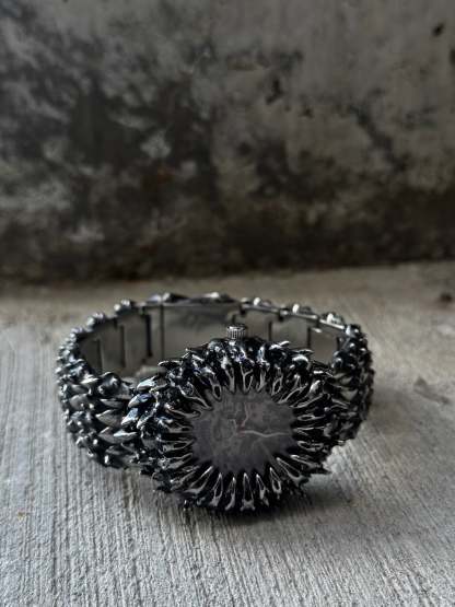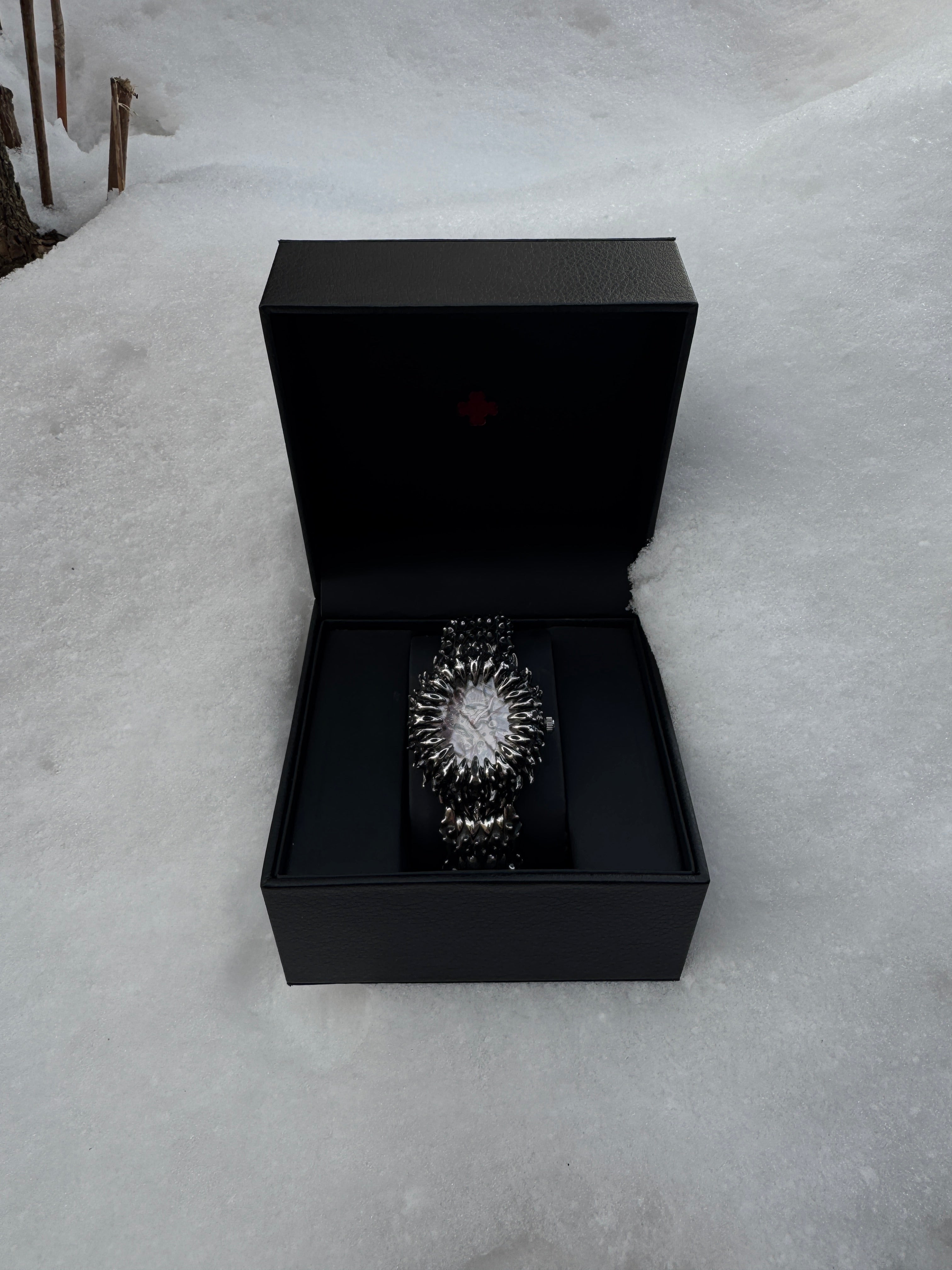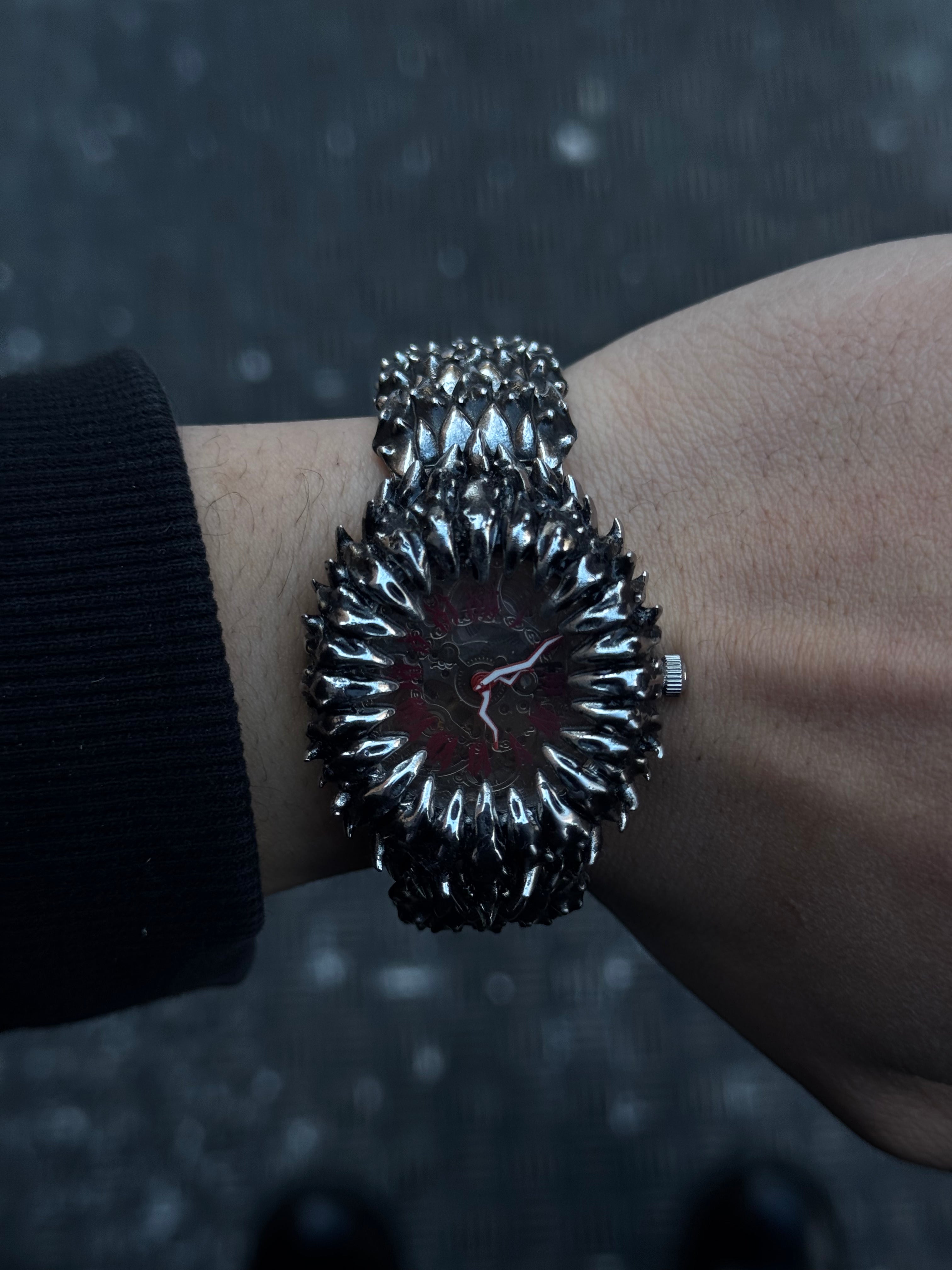 Project Comte self-winding mechanical watch. Arrows and numbers glow luminescent red in the dark. The Crown looks like a Comte™ flower. Links are adjustable. Shi comes in 2 versions Stainless steel and Sterling silver (different % of silver might be used in the alloy for different parts of the item).