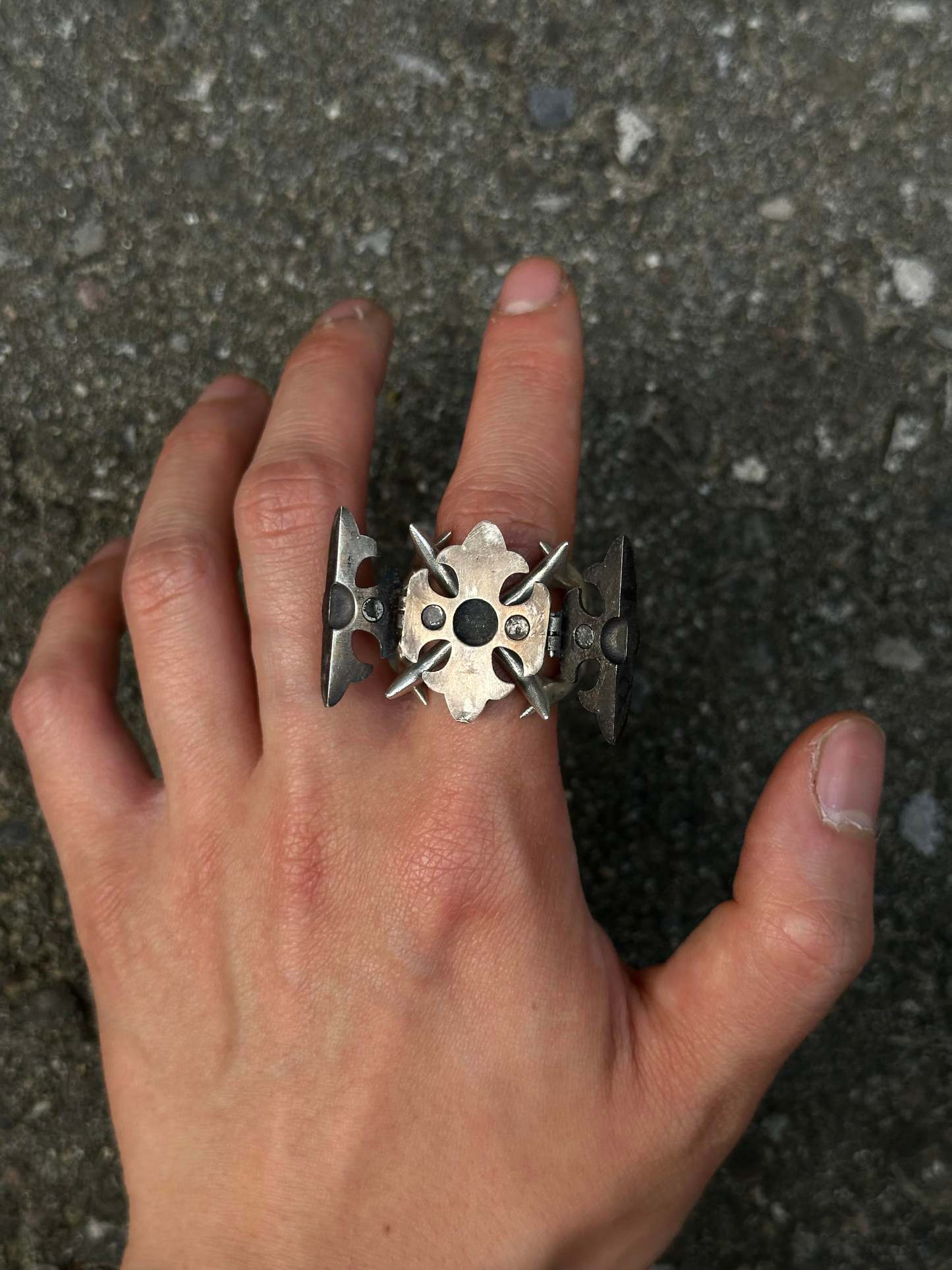 Project Comte cool af ring comes in 2 versions Stainless steel and Sterling silver (different % of silver might be used in the alloy for different parts of the item). Has a space inside 5mm diameter if the party is boring