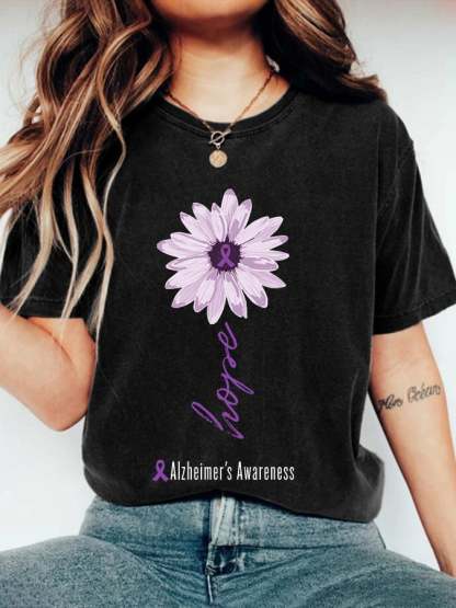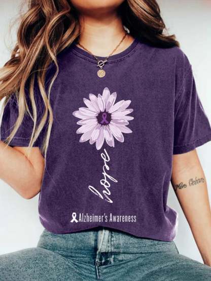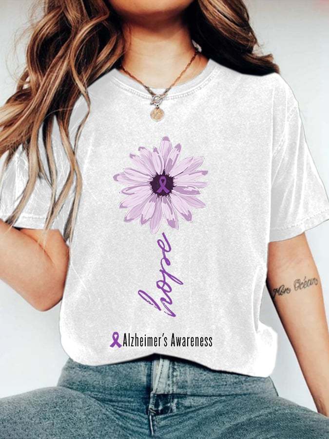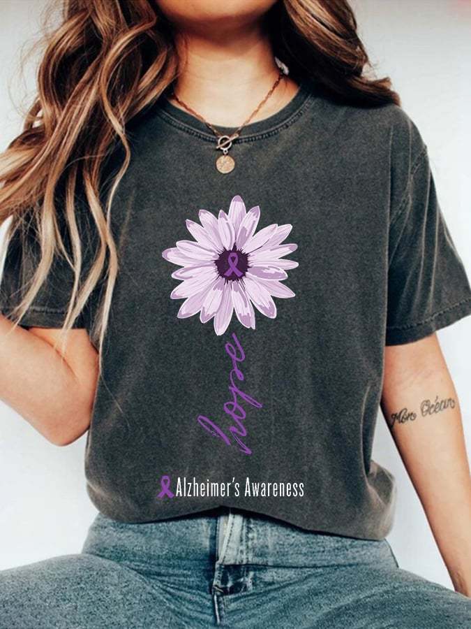 Retro Alzheimer's Awareness Flower Hope Print T-Shirt