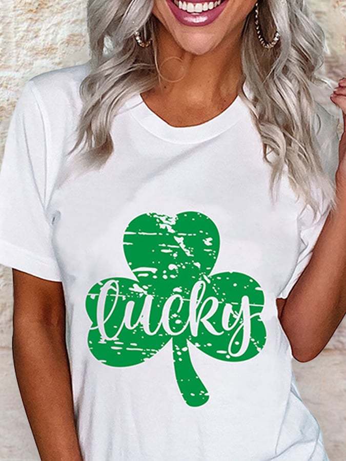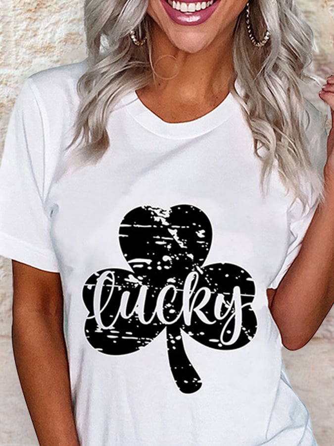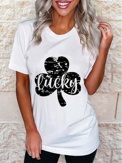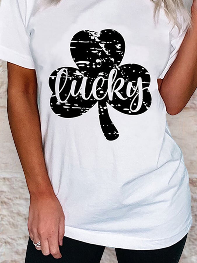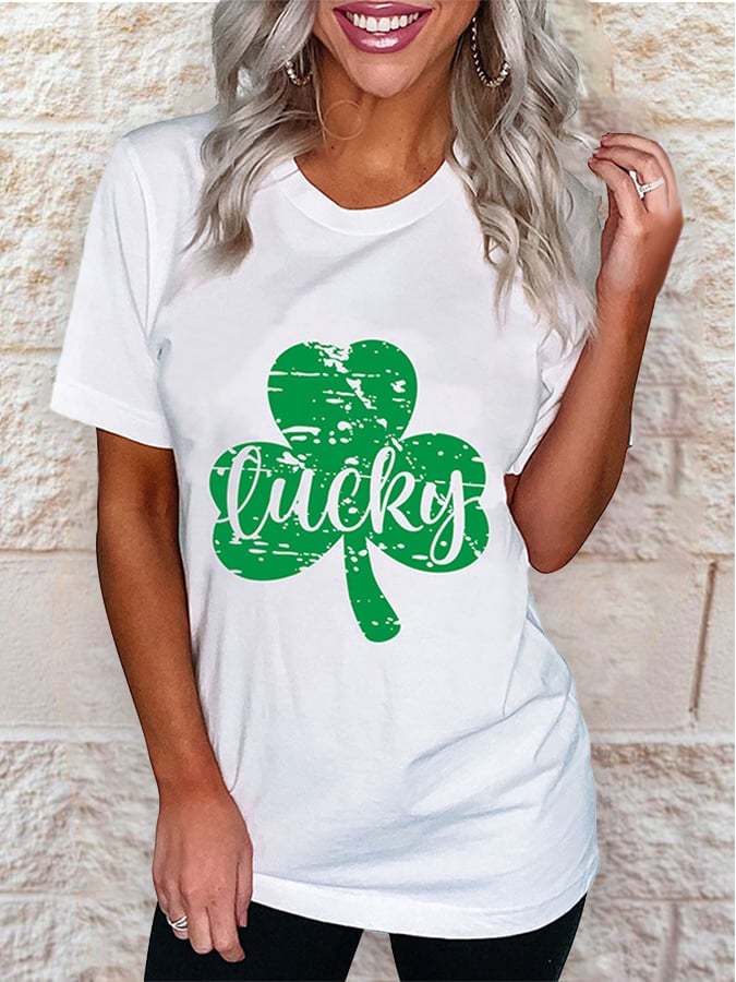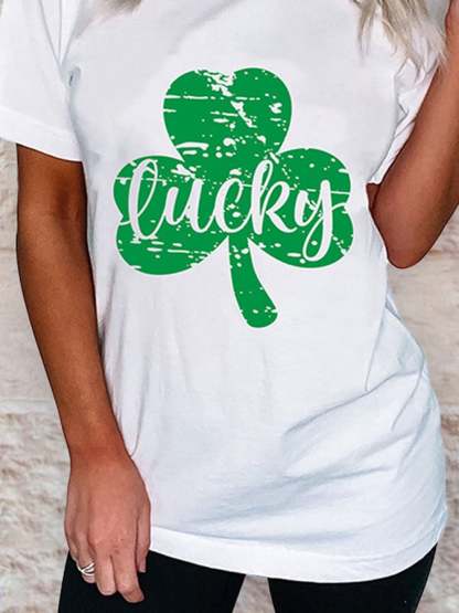 Shamrock Lucky Print Casual T-Shirt