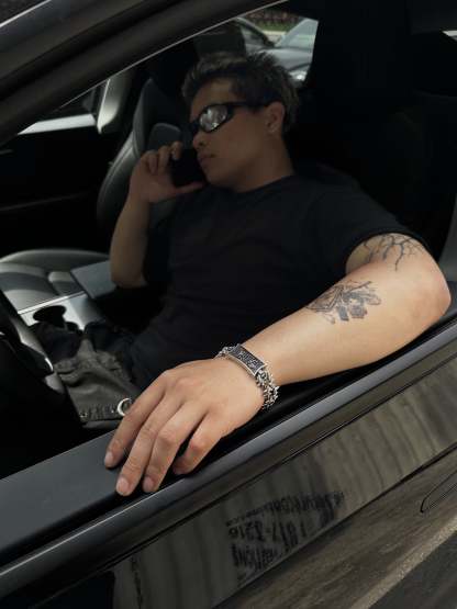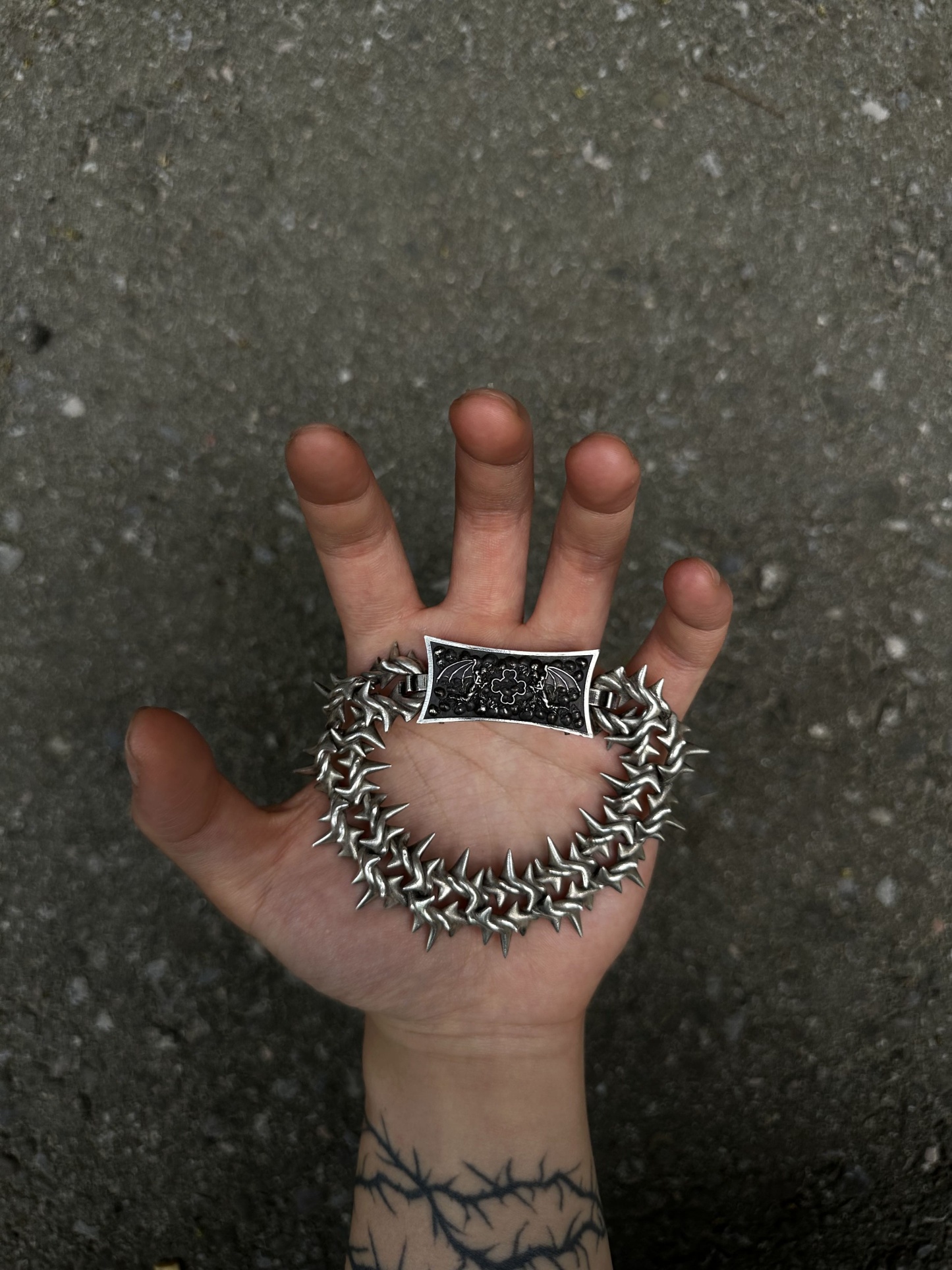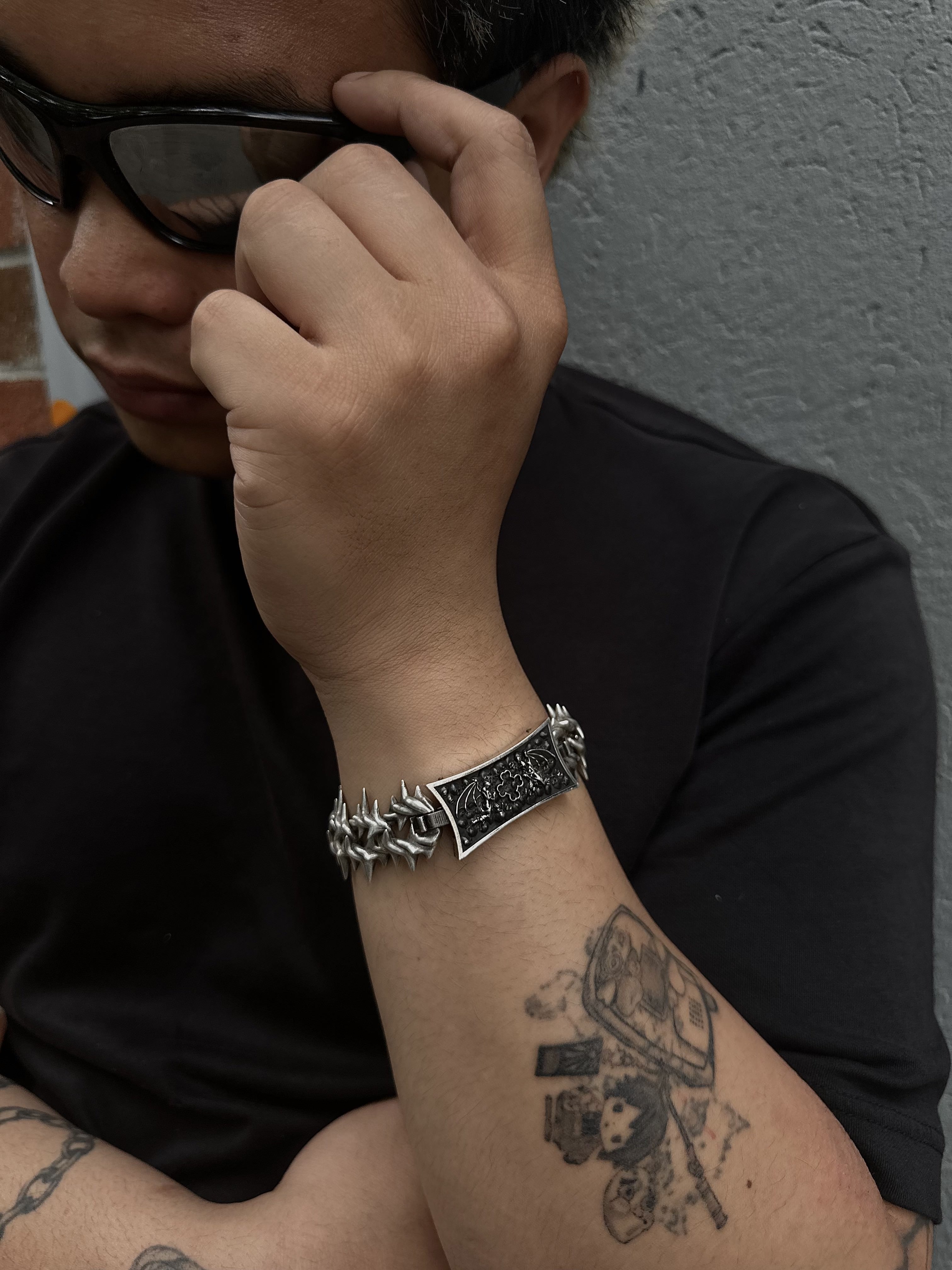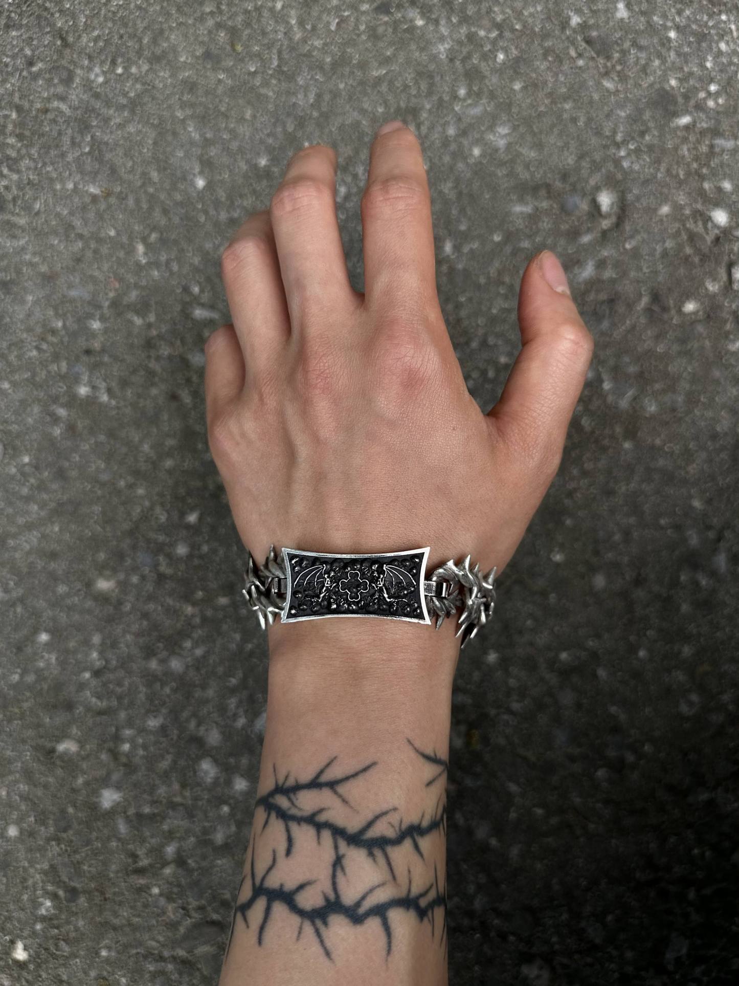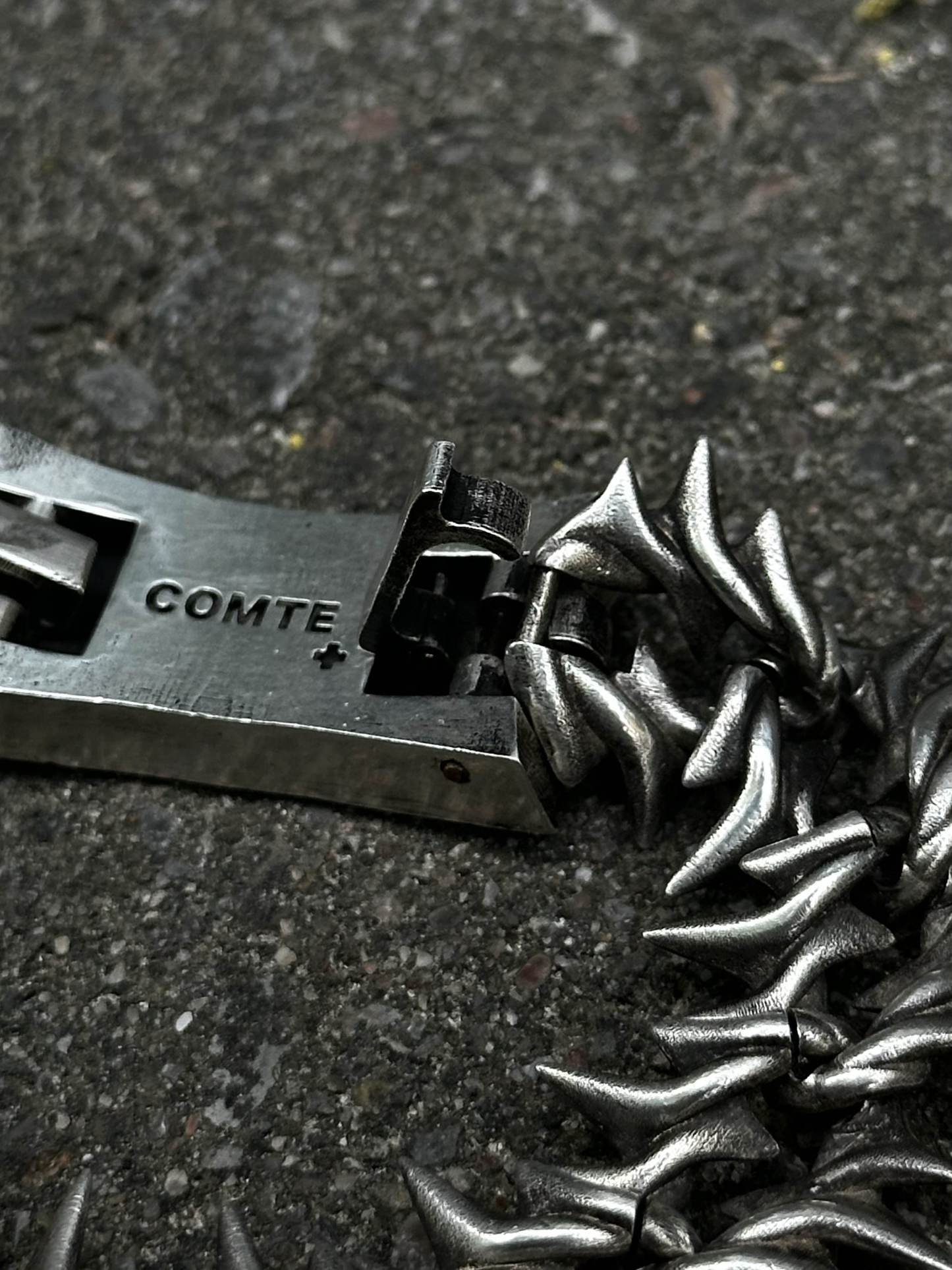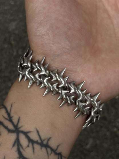 Project Comte cool af bracelet comes in 2 versions Stainless steel and Sterling silver (different % of silver might be used in the alloy for different parts of the item). Spikes do not touch the skin directly.