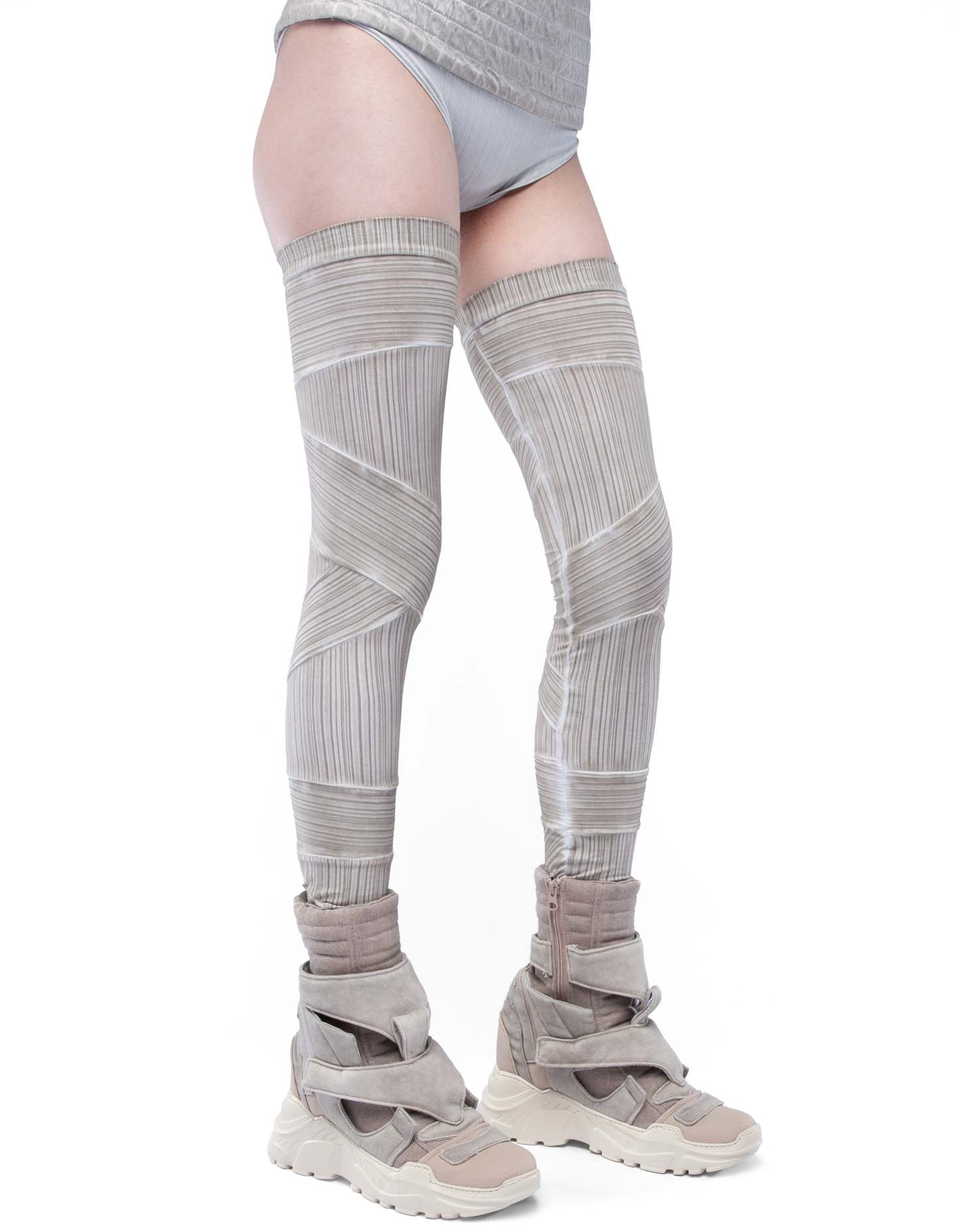 super–soft thin elastic cotton leggings with deconstructive elements and dusty beige washed effect