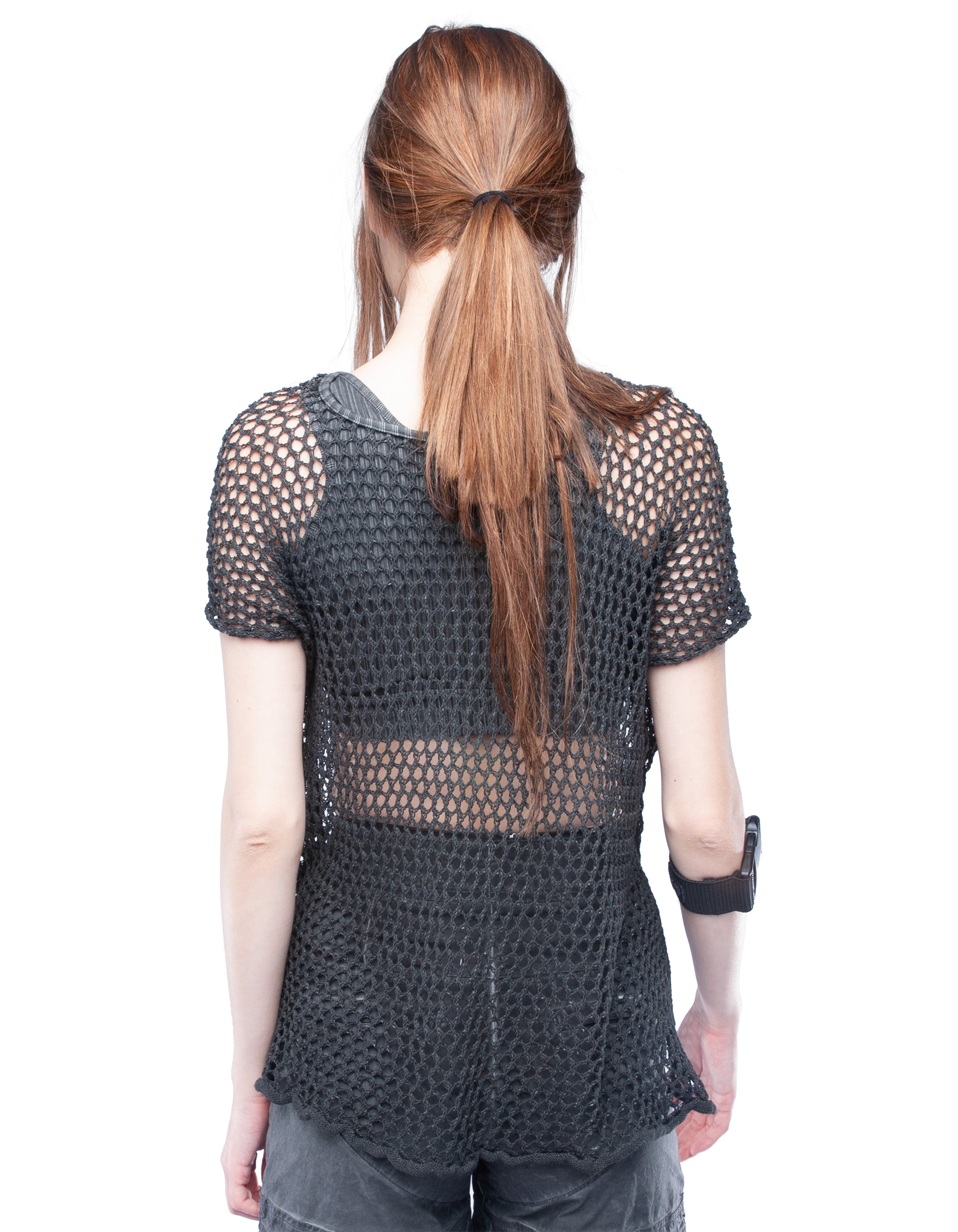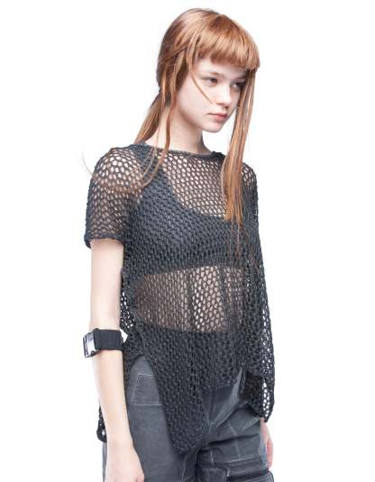 net cotton knitted basic top
