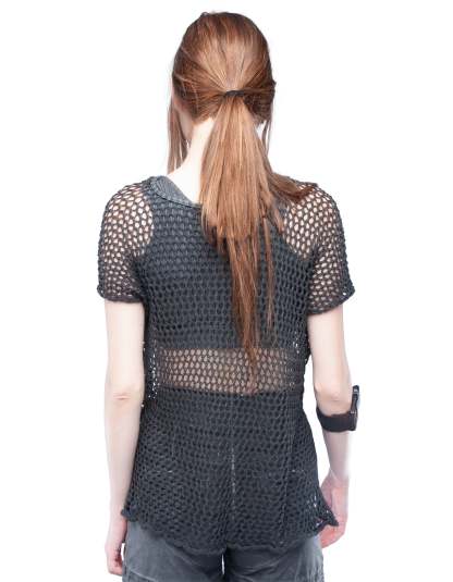 short sleeves, open neck, black washed effect, dusty black washed effect