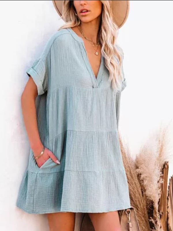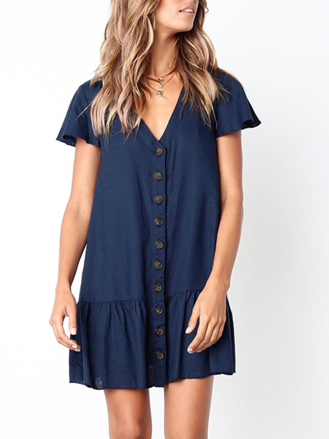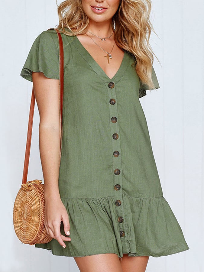 Spring And Summer New Products Fashion Women's V -Neck Drawing Front And Rear Drawing Big Skirts Irregular Dress