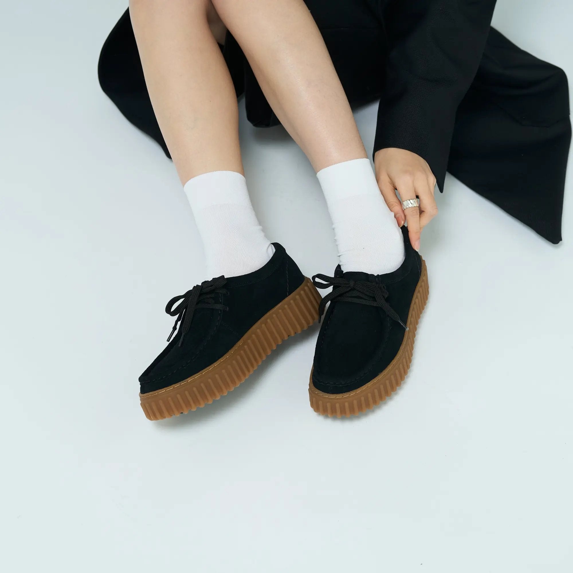 Torhill Bee is a shoe that combines the upper of clthtarks' iconic Wallabee with the chunky sole of the Big Gripper, which was born in the 90s, featuring a fresh and unique design that remains unchanged from 30 years ago.
