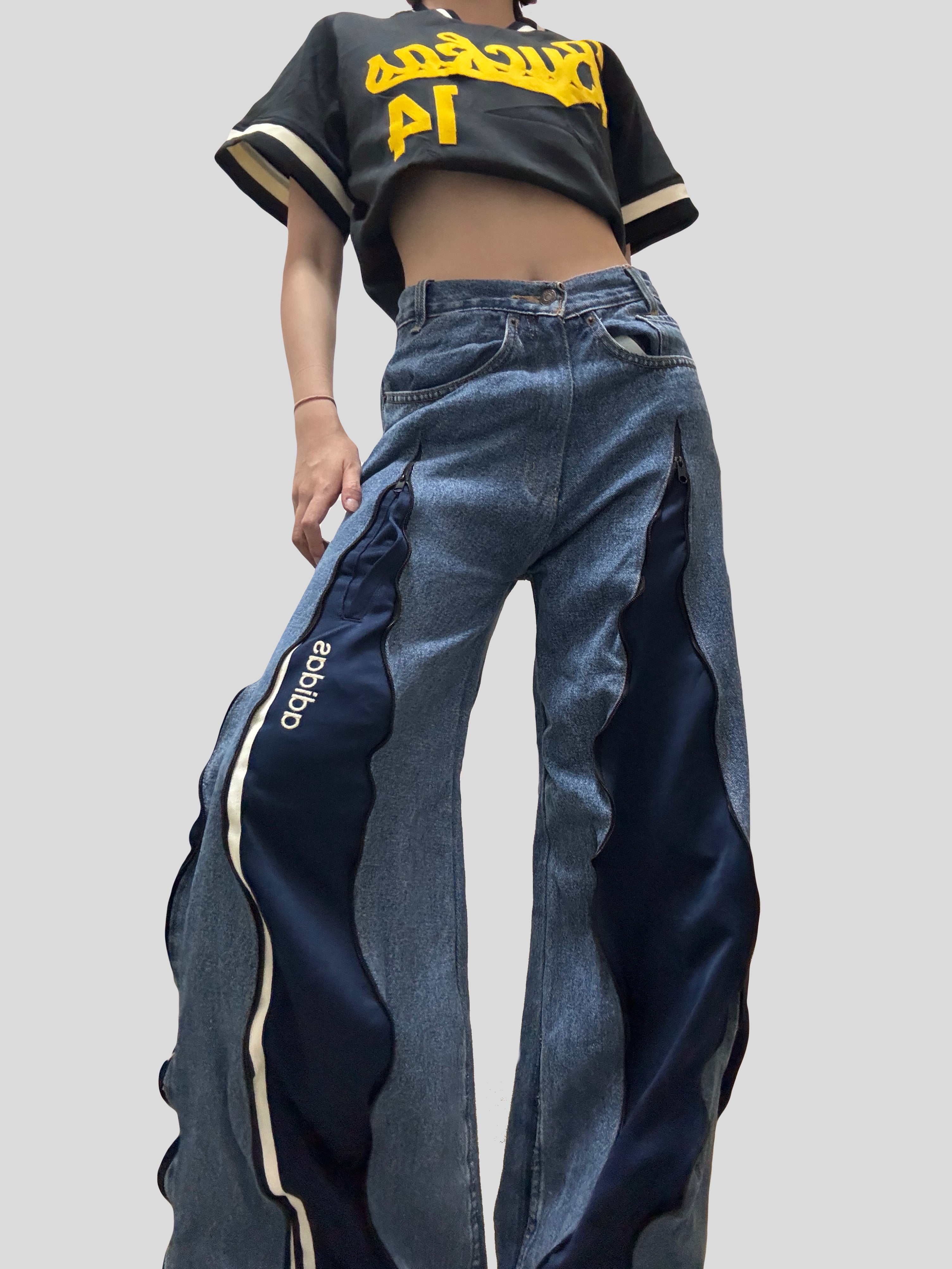 🔹Length: 41”Remade from sport brands sweatpants and Levi’s jeans👖