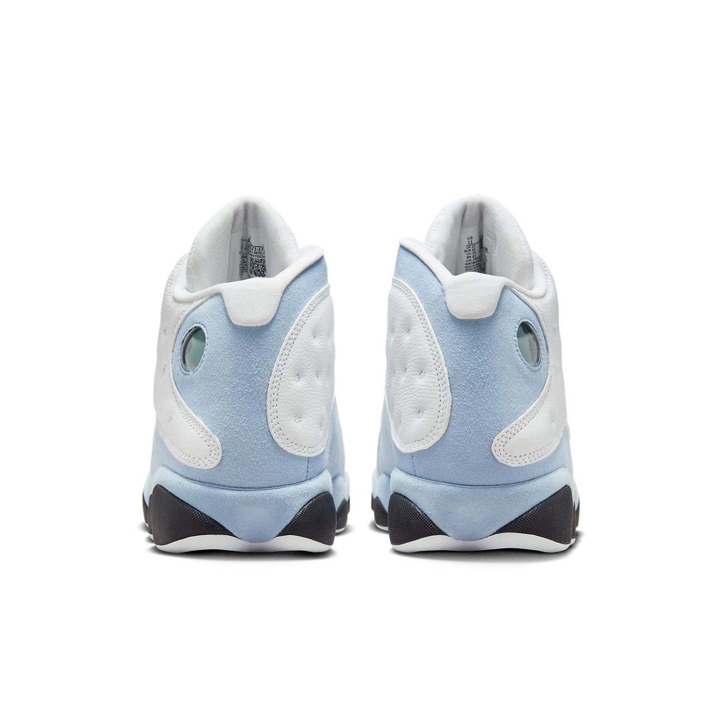 The Jordan 13 Retro Blue Gray features a crisp white leather upper with blue/gray suede accents, creating a striking contrast. The quilted design and panther paw outsole provide both style and grip, while Zoom Air cushioning ensures comfort. This iconic sneaker, released in February 2024, is a must-have for any Jordan fan.