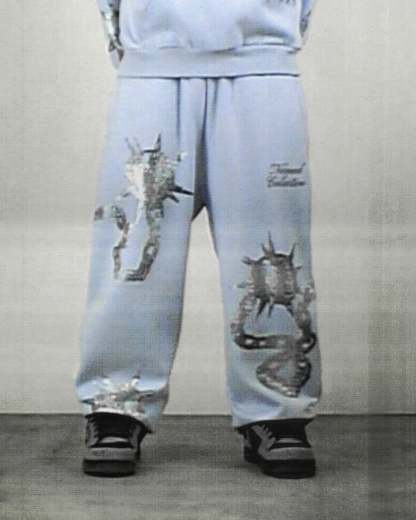 CLASH RHINESTONE SWEATPANTS ICED BLUE