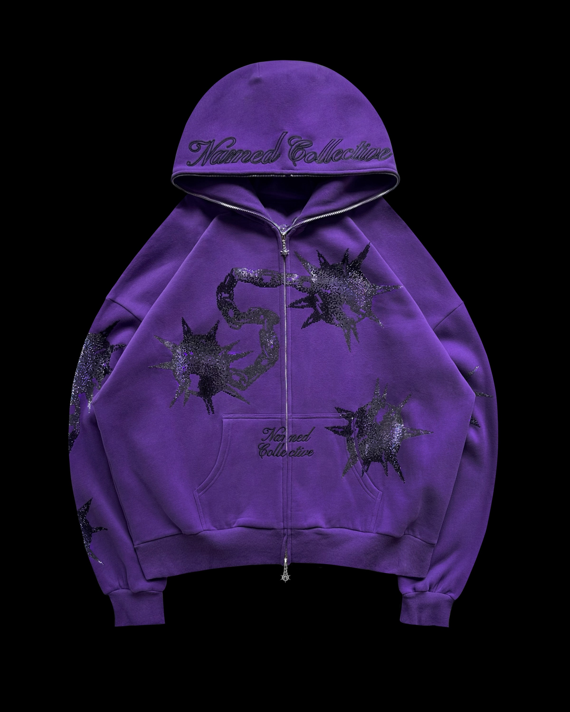 CLASH RHINESTONE ZIP HOODIE AMETHYST