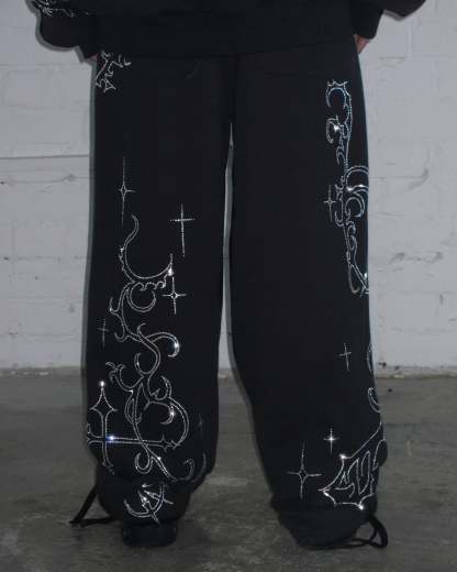 ETERNAL RHINESTONE SWEATPANTS BLACK
