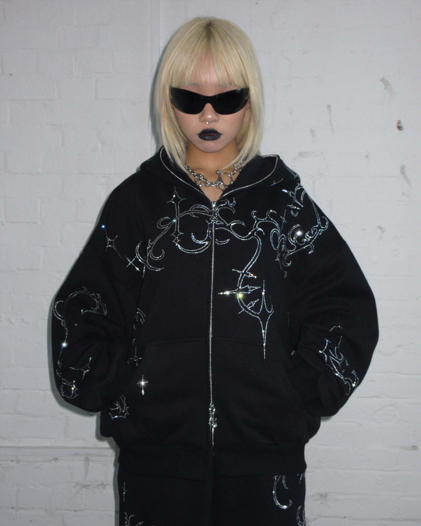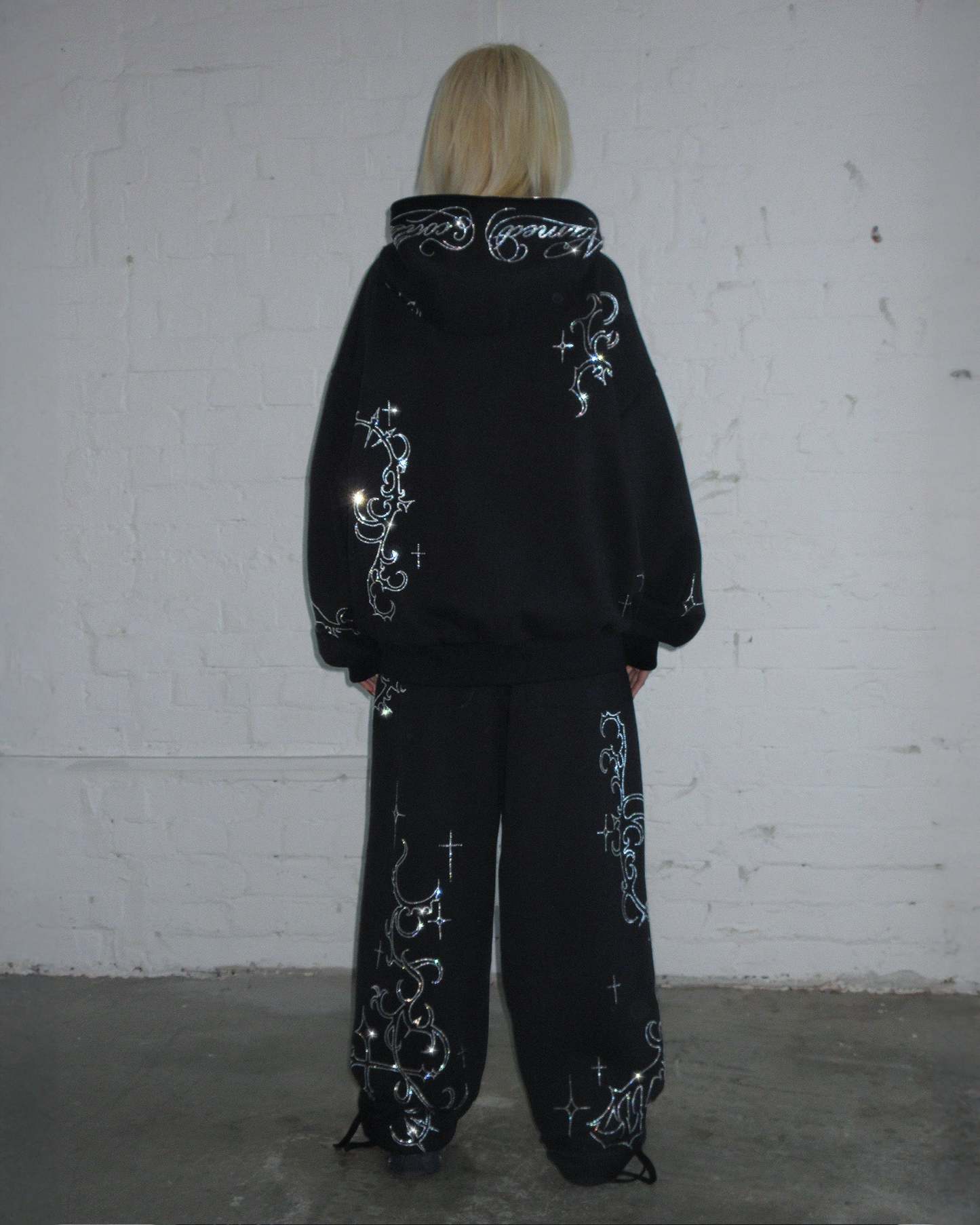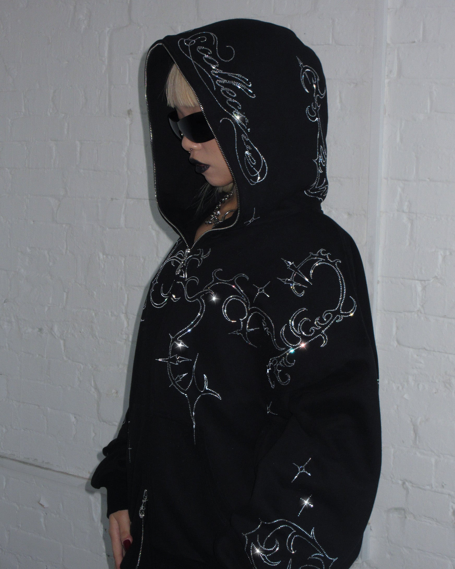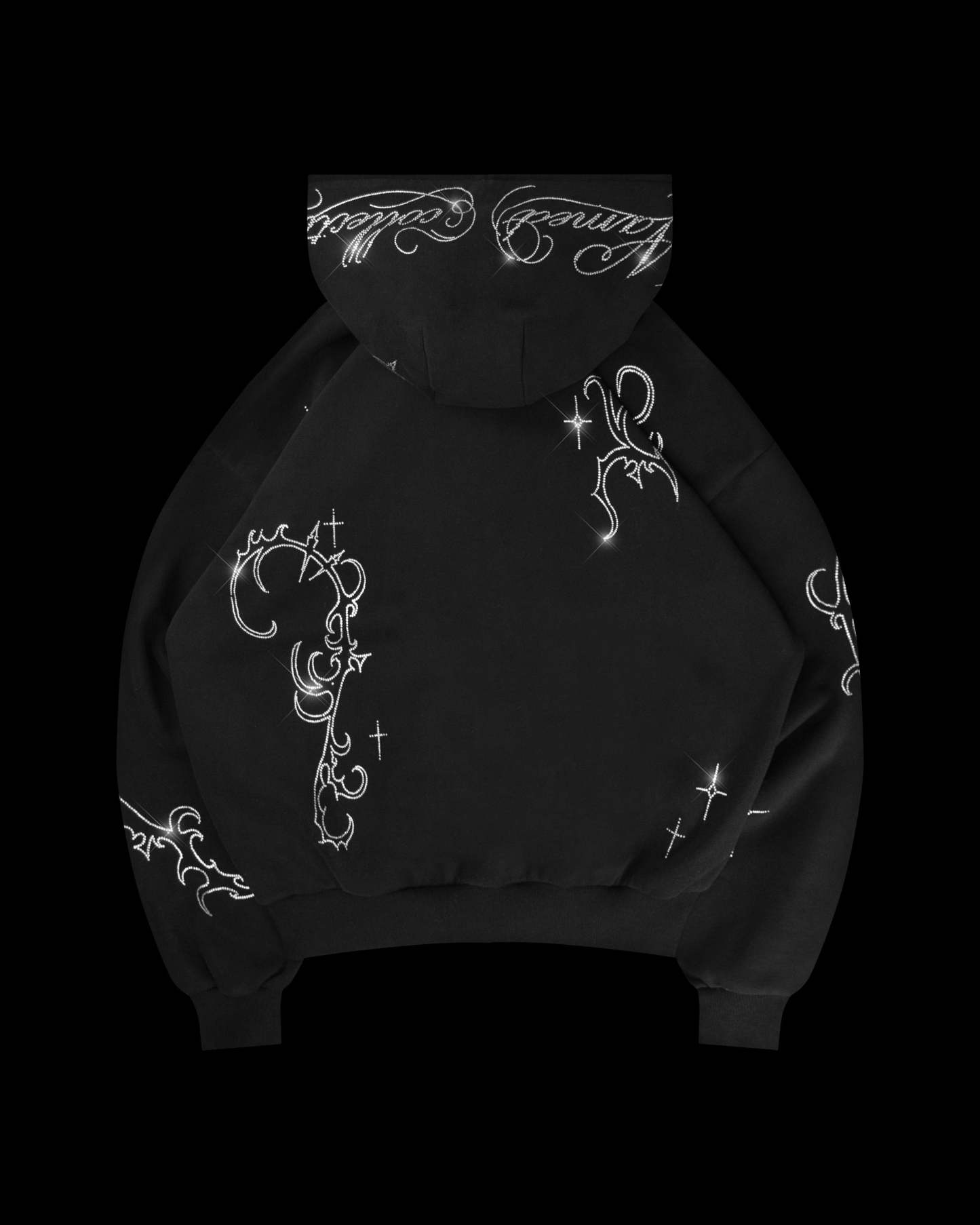 ETERNAL RHINESTONE ZIP HOODIE BLACK