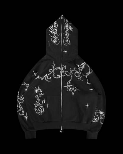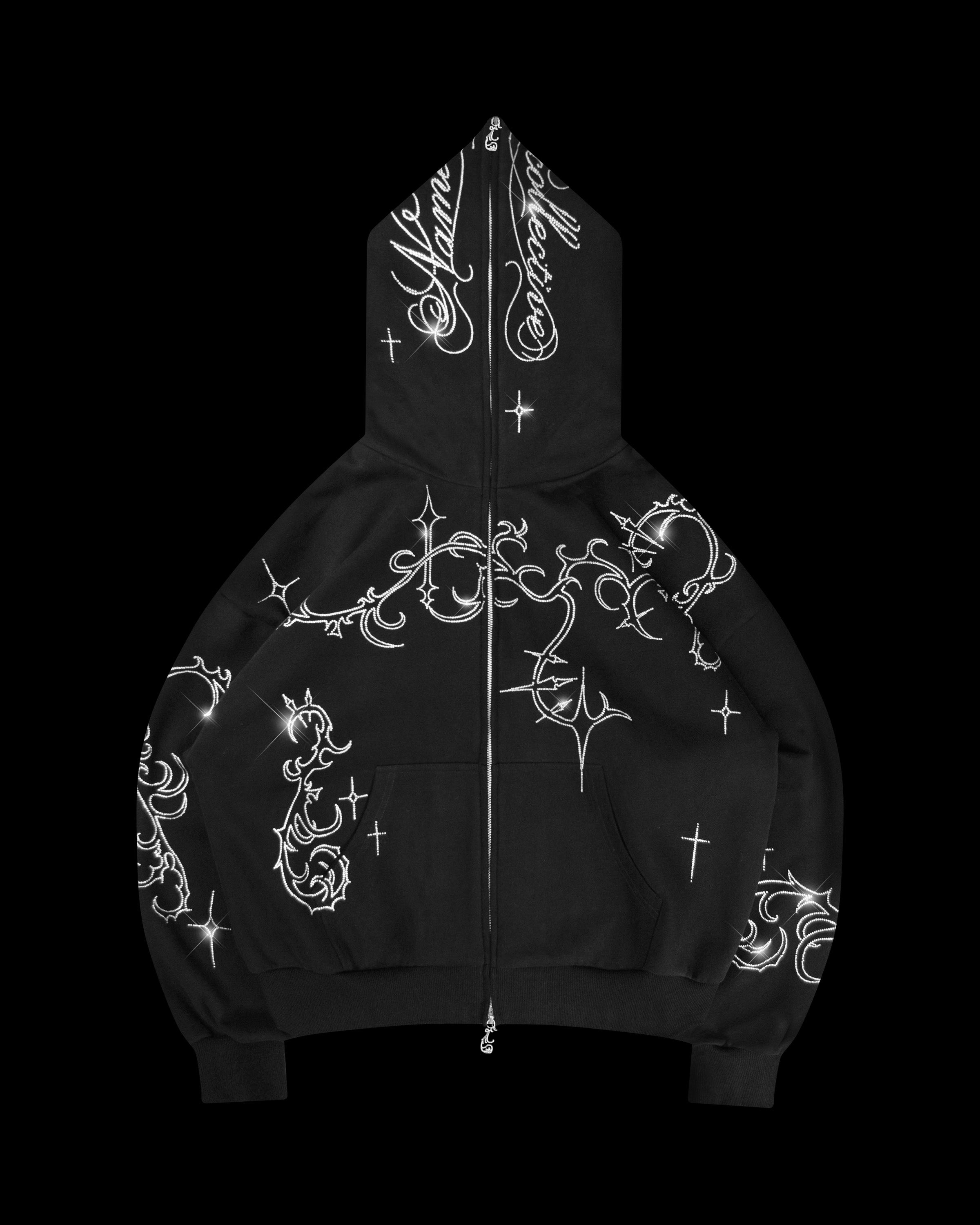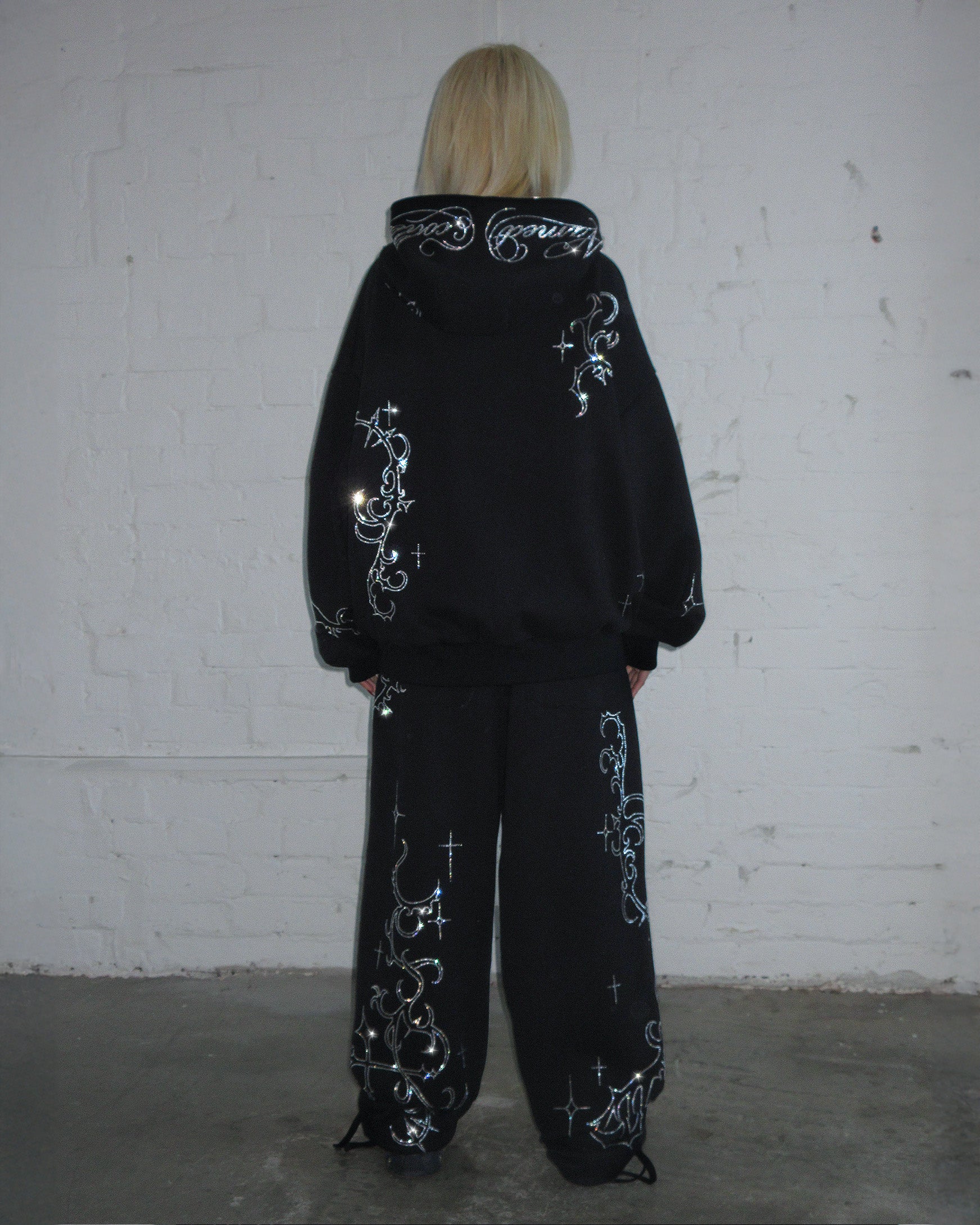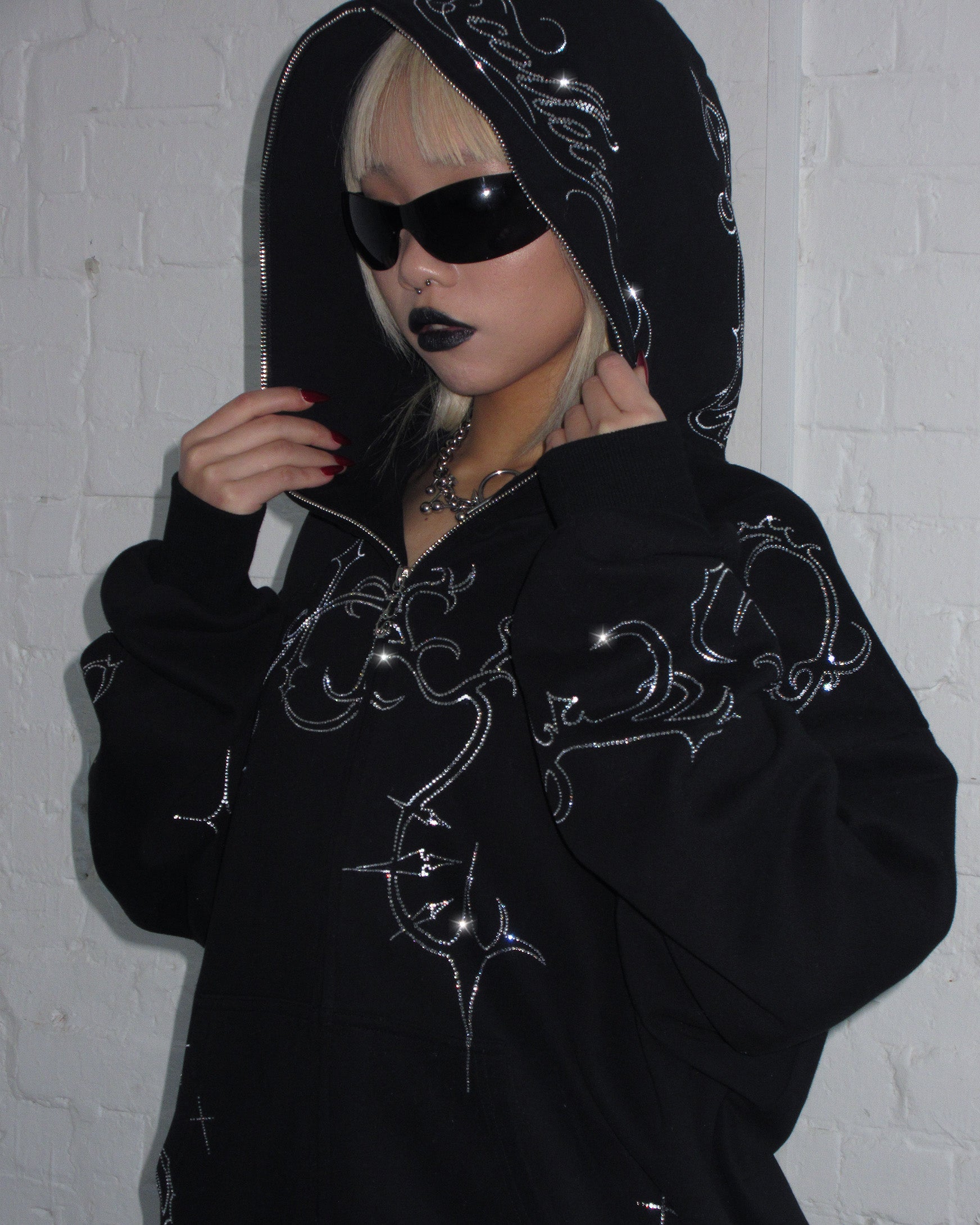 ETERNAL RHINESTONE ZIP HOODIE BLACK