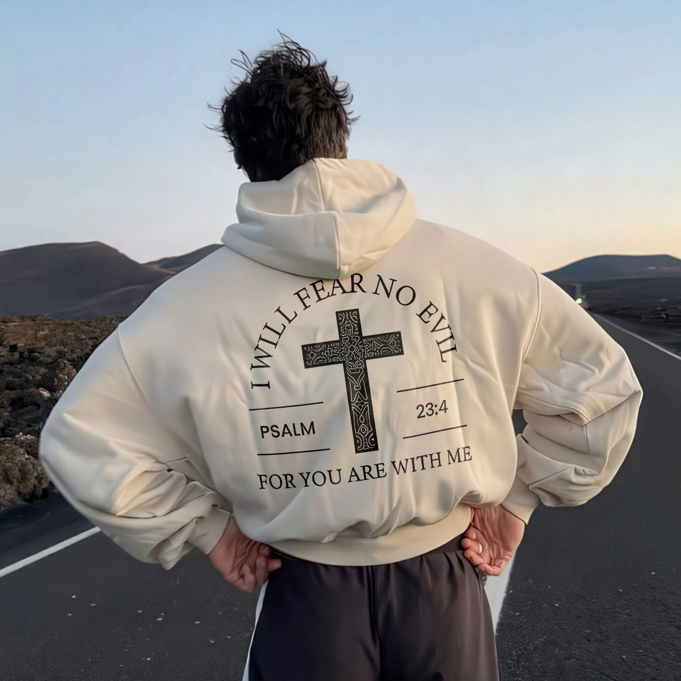 I Will Fear No Evil Psalm 23:4 For You Are With Me Printed Men's Hoodie