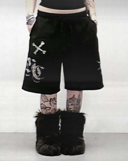 LETHAL RHINESTONE SWEATSHORTS BLACK