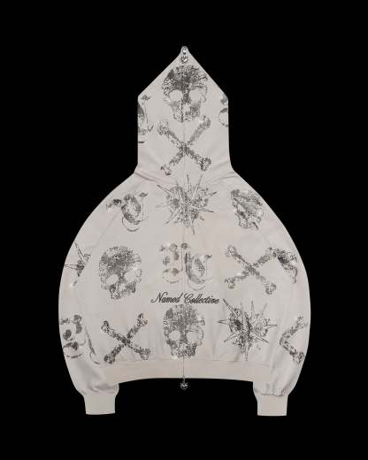 LETHAL RHINESTONE ZIP HOODIE BONE