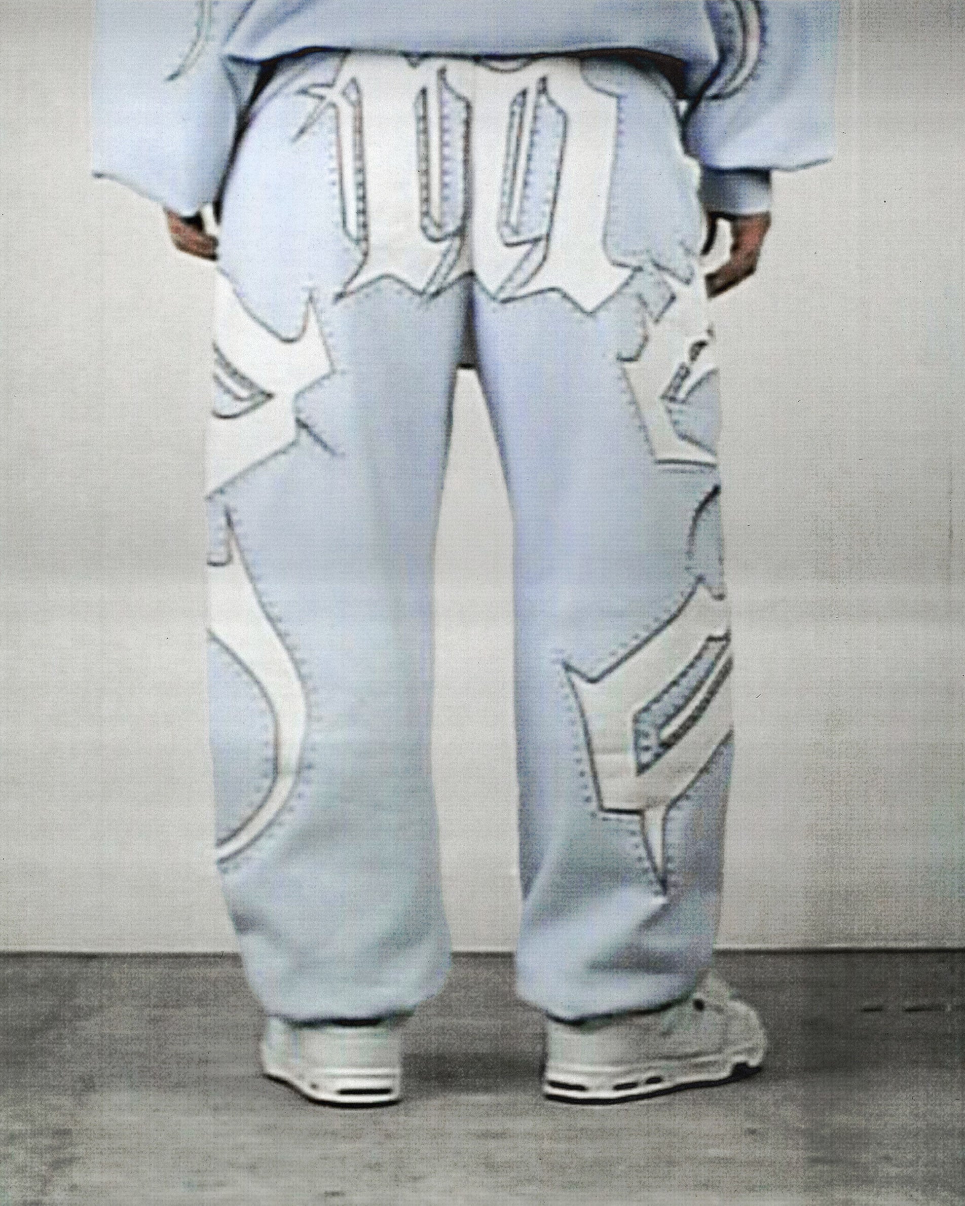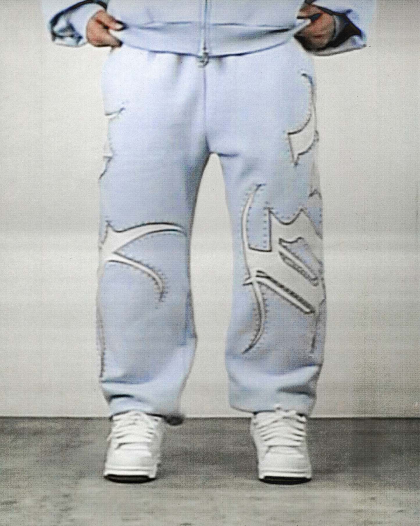 MONSTER RHINESTONE SWEATPANTS BABY BLUE