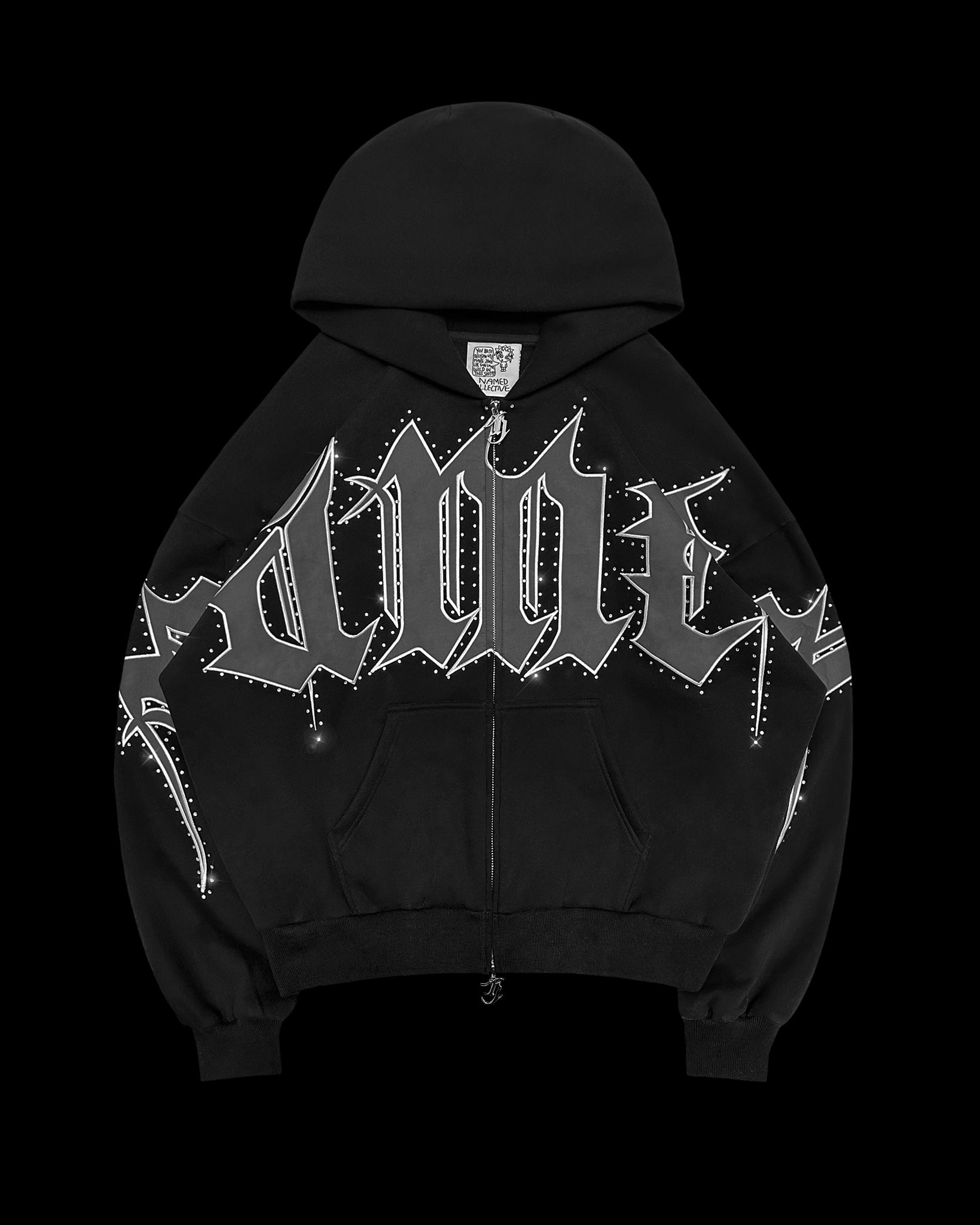 MONSTER RHINESTONE ZIP HOODIE BLACK