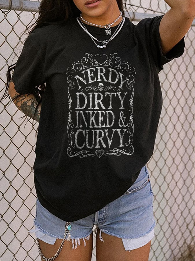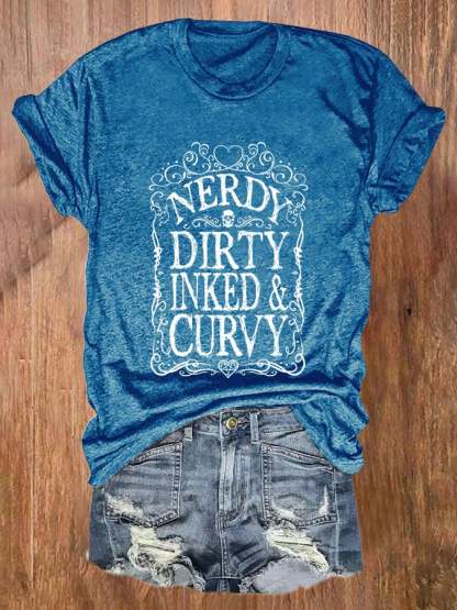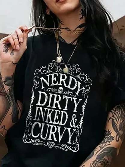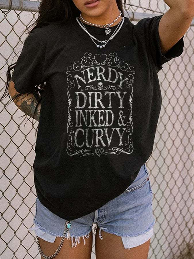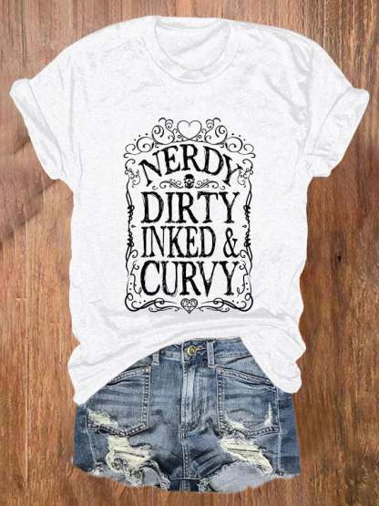 Retro Nerdy Dirty Inked & Curvy Print T-Shirt