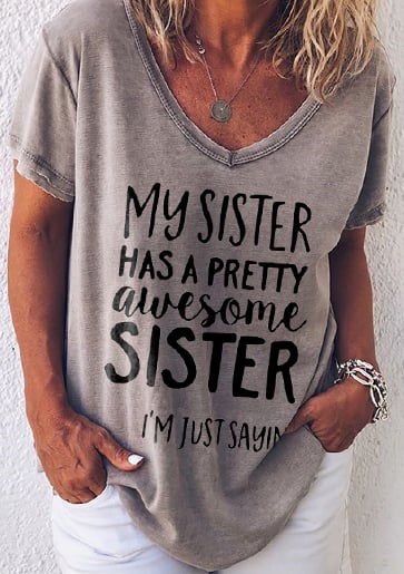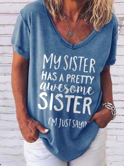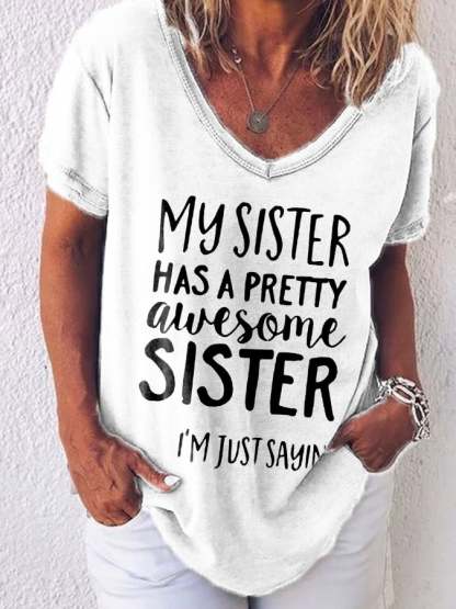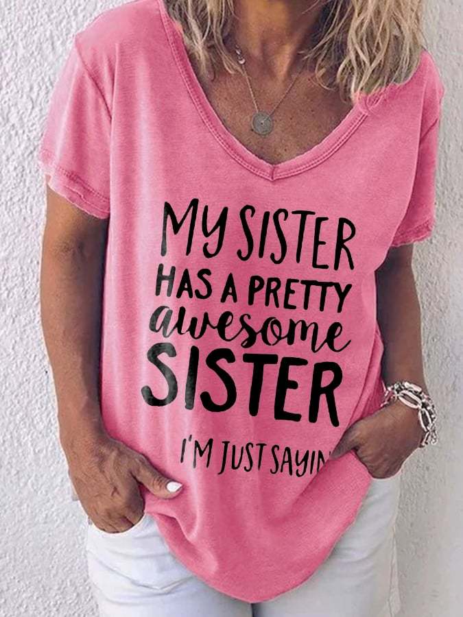 Women's My Sister Has A Pretty Awesome Sister I'M Just Sayin Print Casual T-Shirt