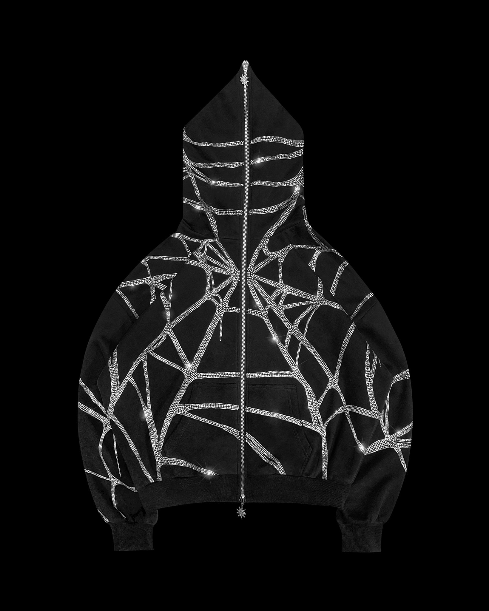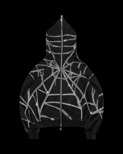 POISON RHINESTONE ZIP HOODIE BLACK WIDOW