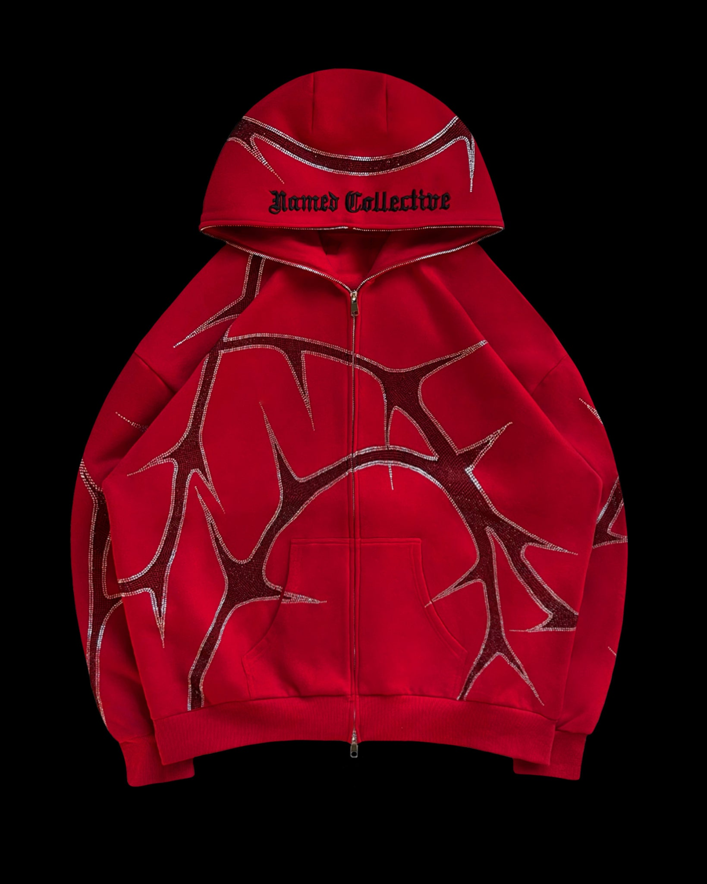 THORN RHINESTONE ZIP HOODIE RED